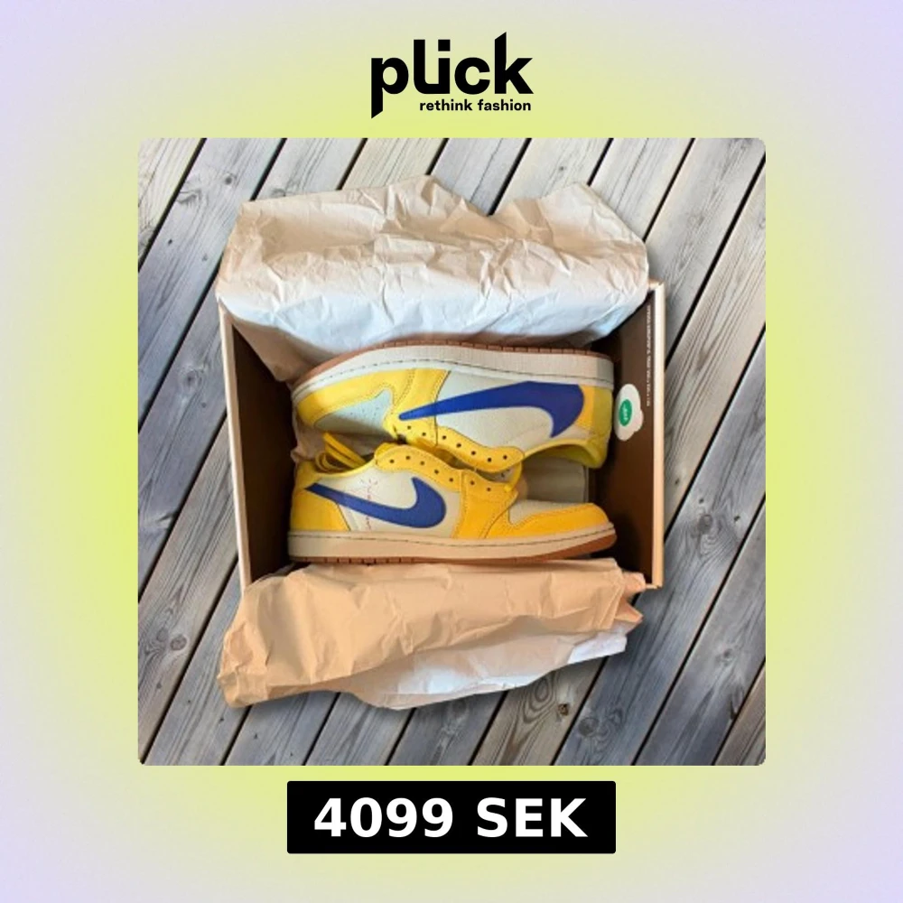 Säljer dessa helt nya Air Jordan 1 Low x Travis Scott i modellen Canary (Women’s). I svensk herrstorlek motsvarar de ungefär storlek 45. Skorna är köpta från SNKRS, och originalkartong samt skosnören medföljer (se sida 3). Dock har kartongen en mindre skada på kanten (se sida 5). Dessa skor är för den modiga, men samtidigt riktigt eleganta och perfekta för sommaren!