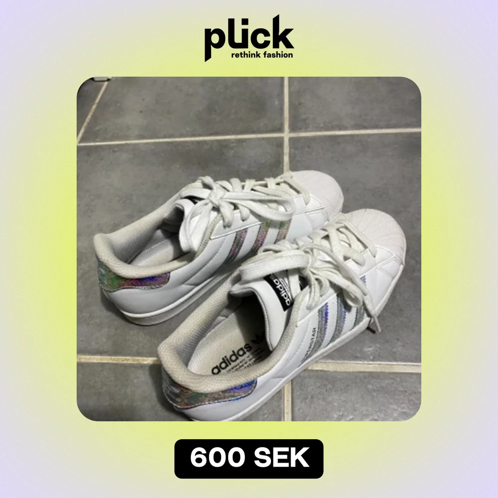 Adidas superstar. Jättebra skick. Använt enstaka gånger. Utsidan är helt ny och inget smuts eller slitet. Bekväma. Passar till allt. Nästan helt nya. De är i storlek 38.