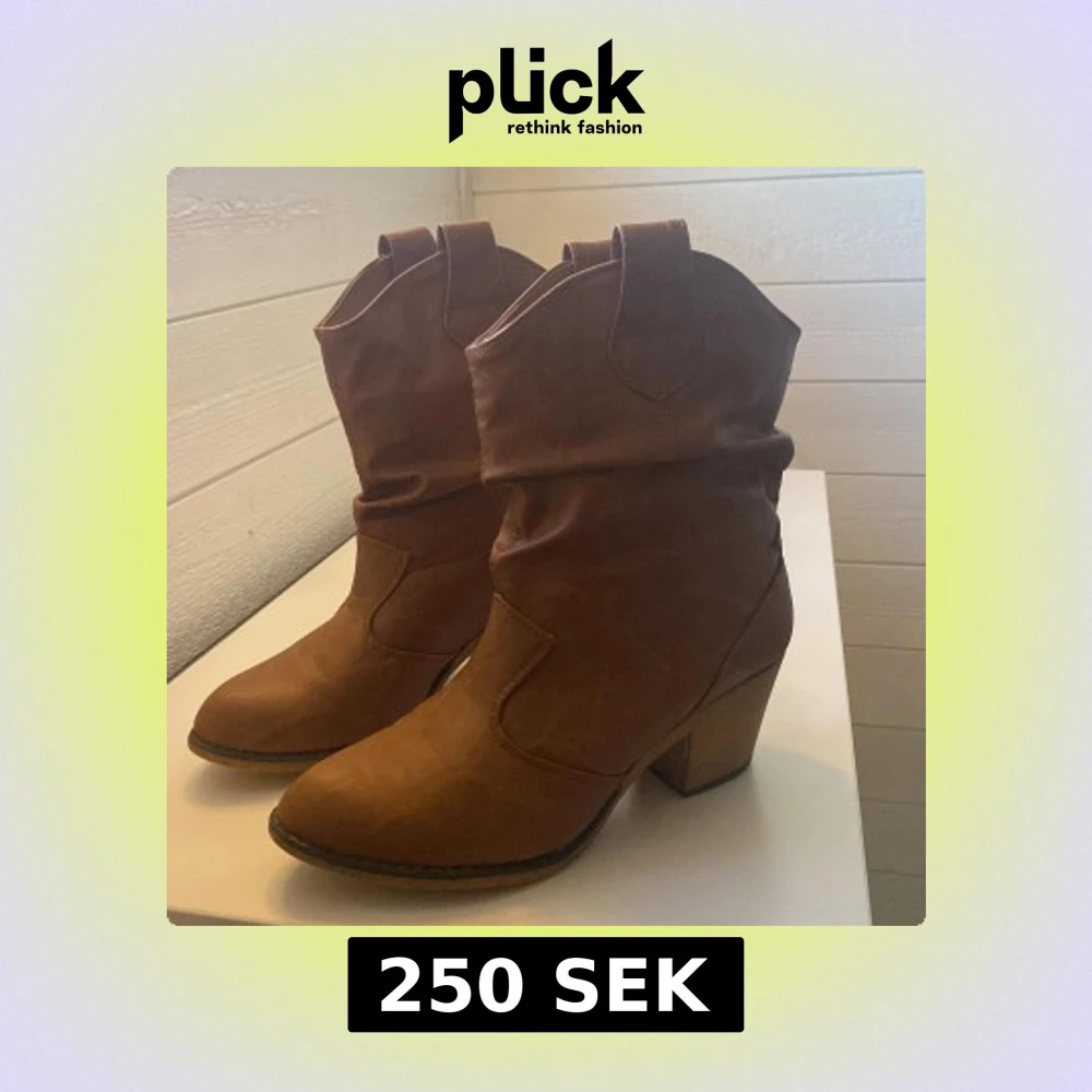 Snygga bruna cowboy boots med klack och rundad tå. Perfekta för en stilren look. Tillverkade i ett material som liknar skinn.