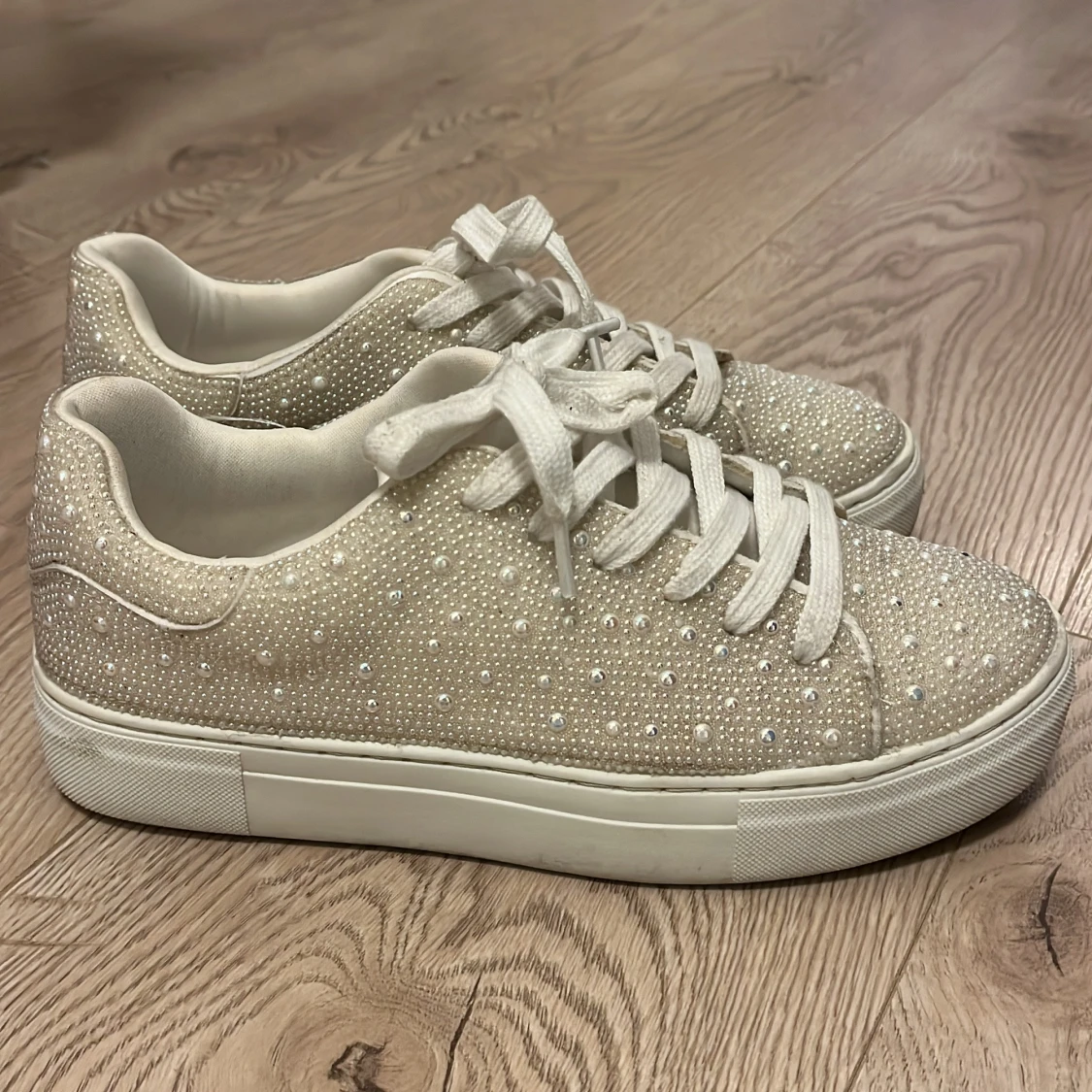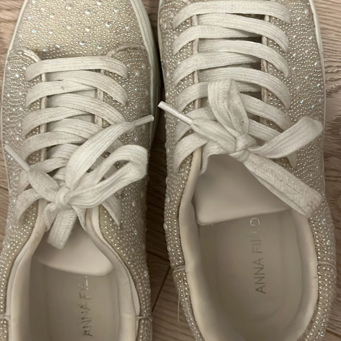 Snygga sneakers från Anna Field i beige med glittriga detaljer. Perfekt för vår 🌸☀️inte använda mycket