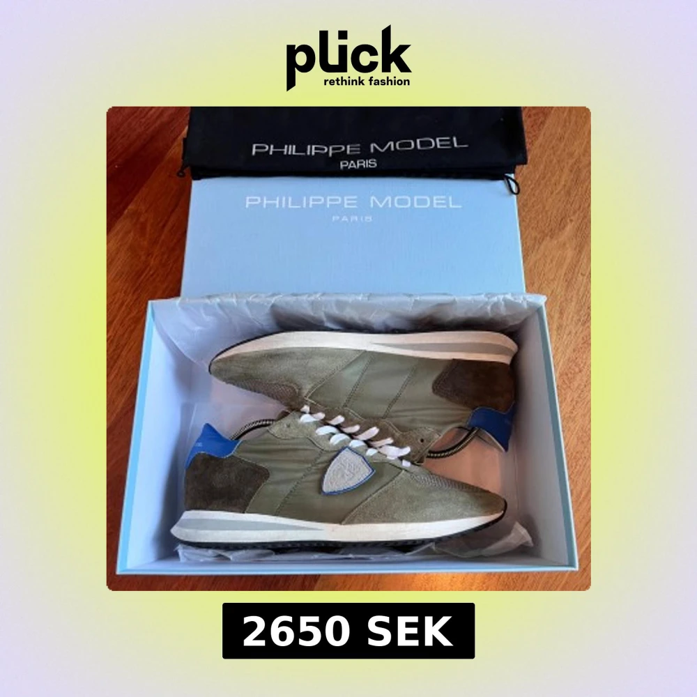 Snygga Philippe Model sneakers i olivgrönt med detaljer i mocka och mesh. Skobox och skopåse ingår i köpet. Nypris 309 CHF vilket motsvarar ungefär 3650 kr. Var inte rädda att skriva vid minsta lilla fundering, Pris kan diskuteras vid snabb affär.