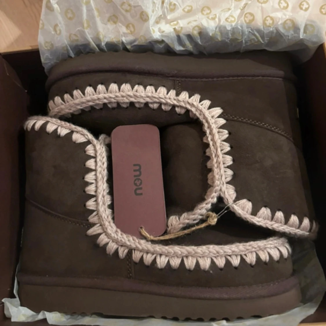 Säljer nu mina mou skor då dem är lite för små för mig så ska försöka hitta ett par nya i en större storlek! Endast andvända ca en vecka i vintras (därav kan jag ej lämna tillbaks dem). Superfint skick🩷🩷Perfekta nu till höst och vinter!