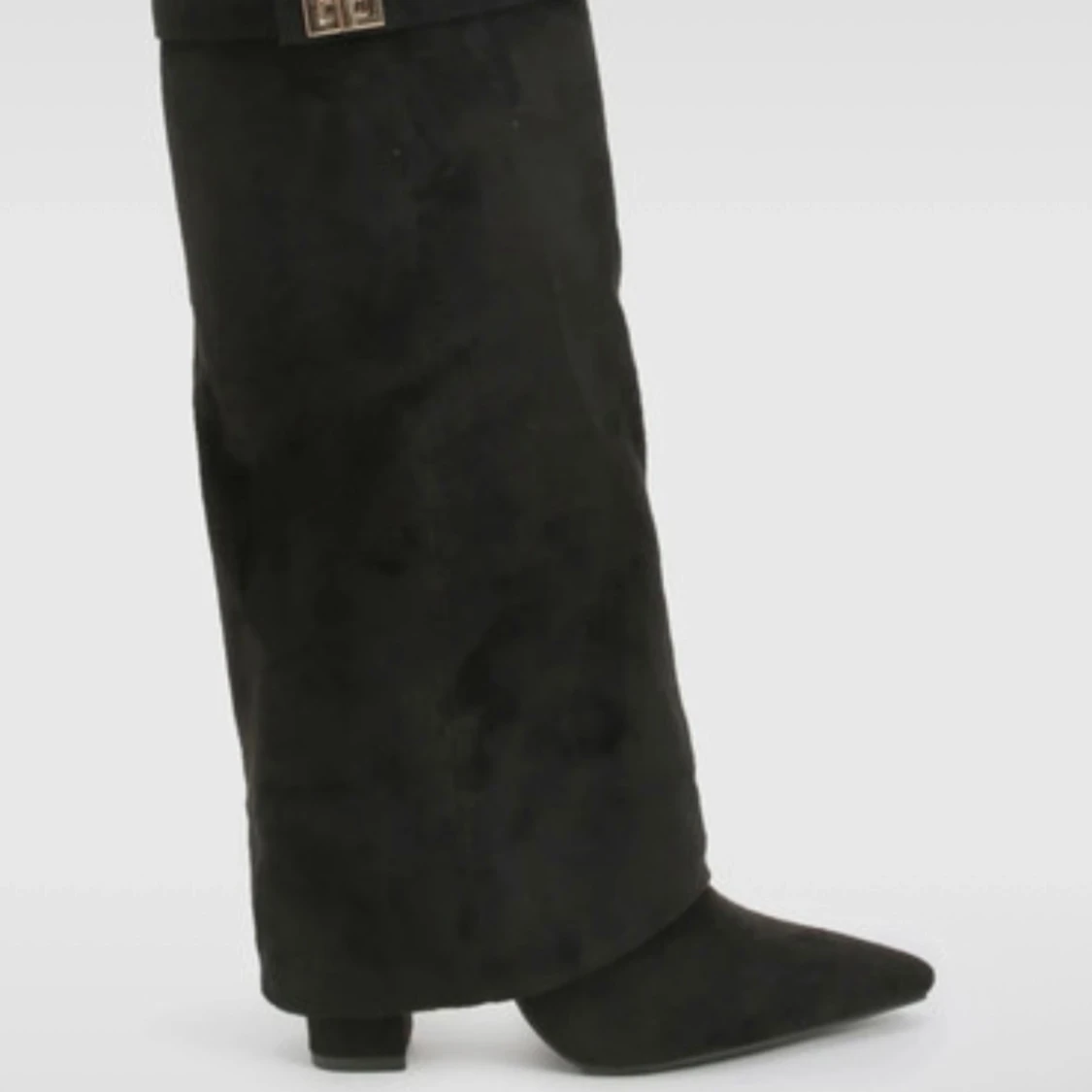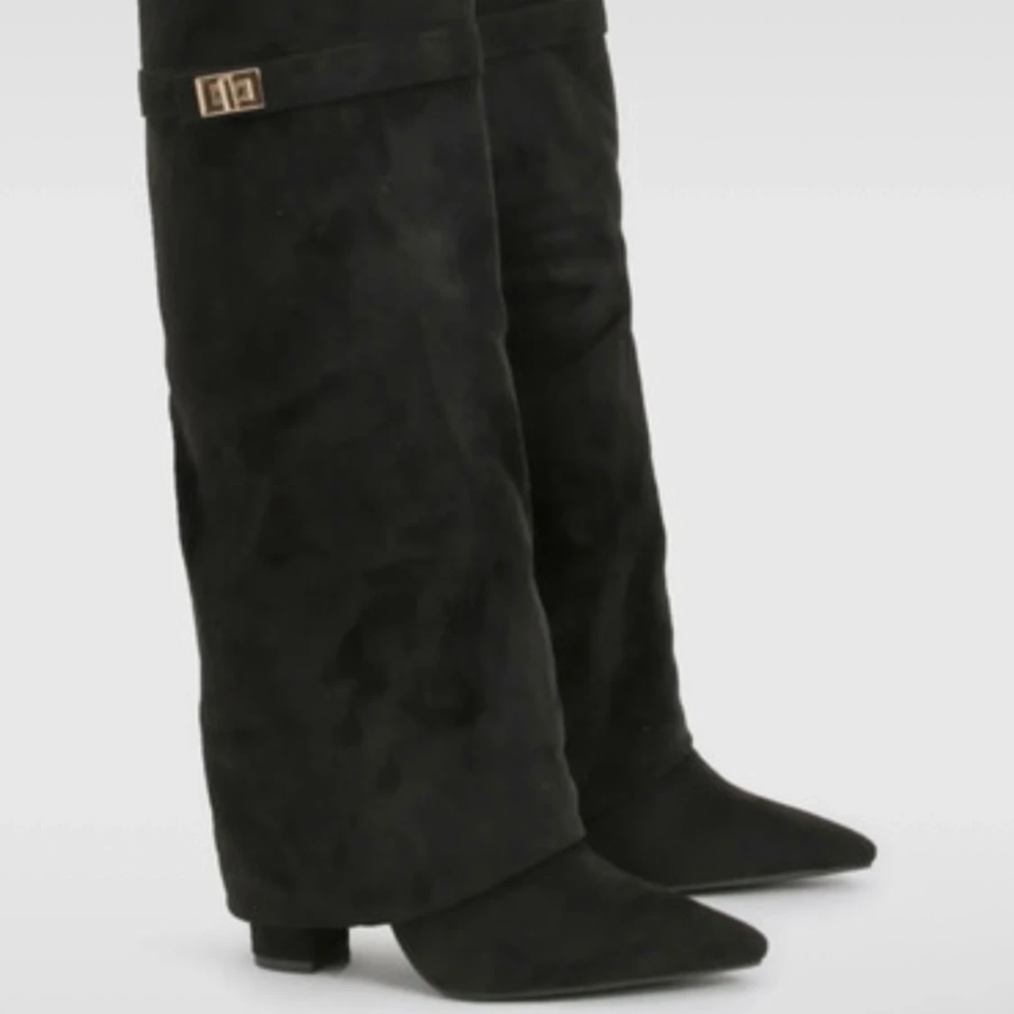 Säljer ett par svarta stövlar i mocka med spetsig tå och klack. Klackarna är helt oanvända säljer pga jag köpte de till en fest och de hann ej komma tills dess, returnerade aldrig de. Helt nytt skick med prislapp! 🩷 pris går att diskuteras!