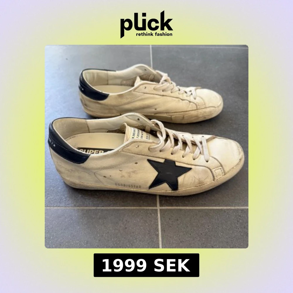 Tja! Säljer nu dessa feta golden goose skor, perfekta för sommaren/våren! Sulan på ena skon har börjat lossna, därav det låga priset. Det är ingen synbart när man använder dem men går att laga på skomakare om man vill. Storlek: 43 | Skick: 8/10 utöver sulan. Meddela vid eventuella frågor mvh ResellGarms