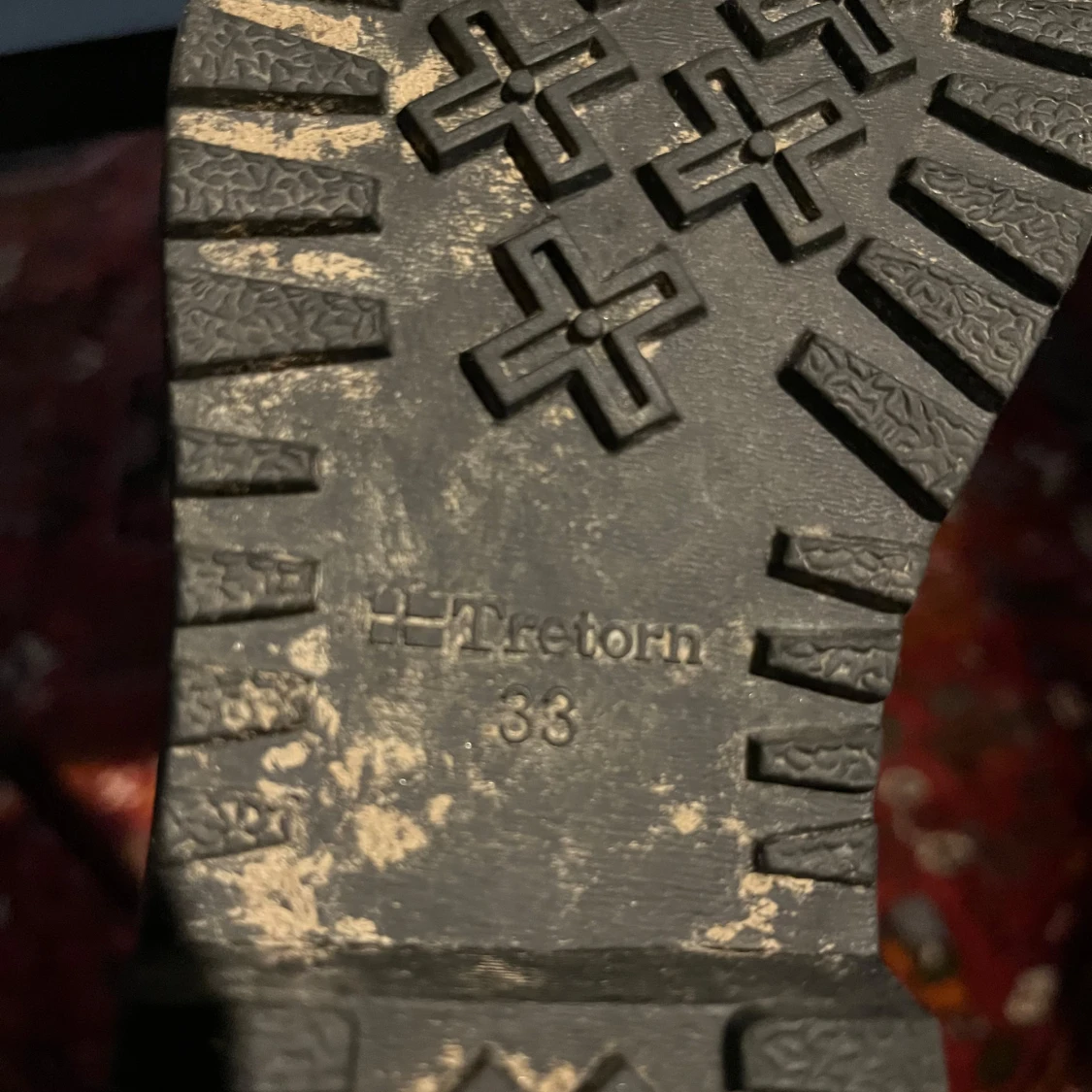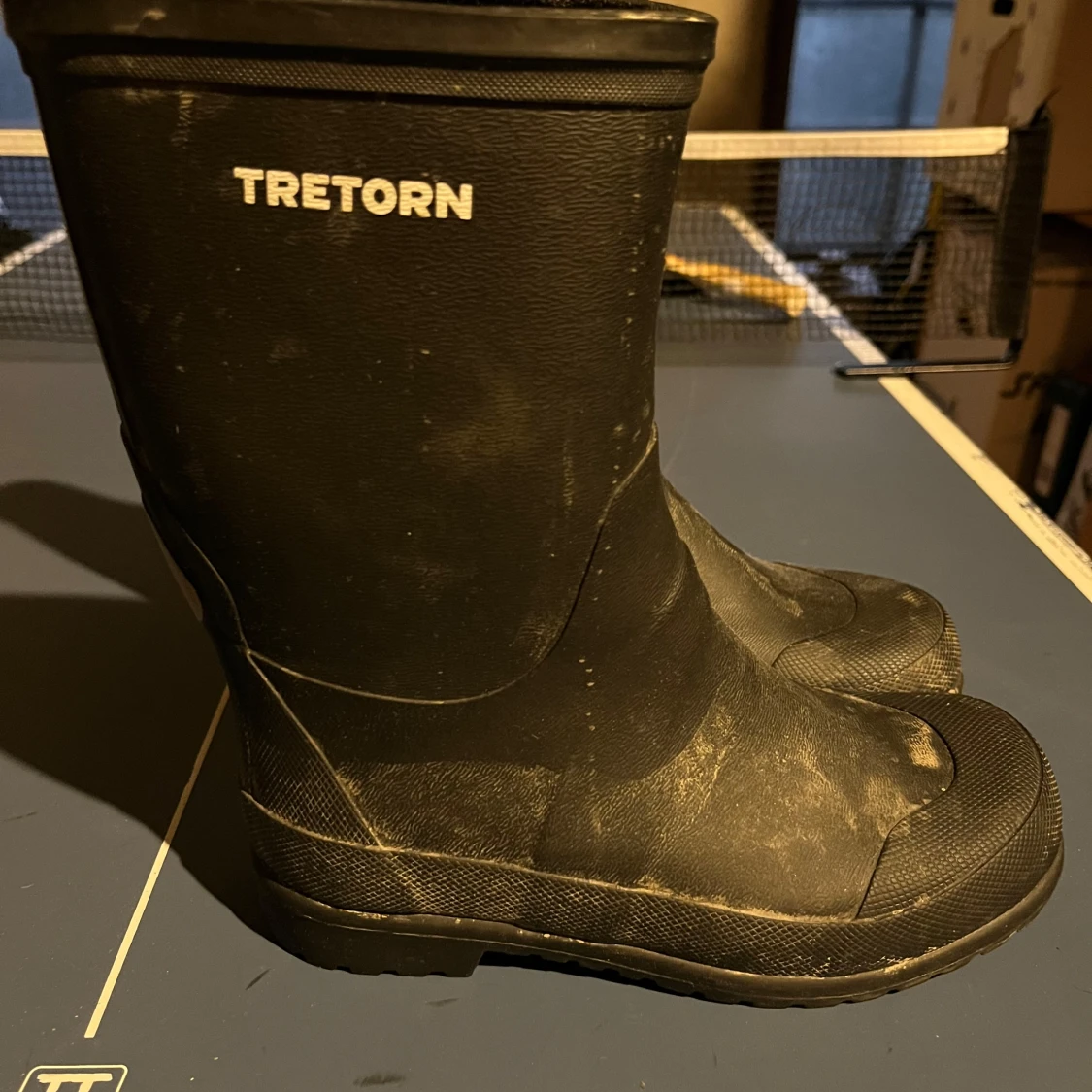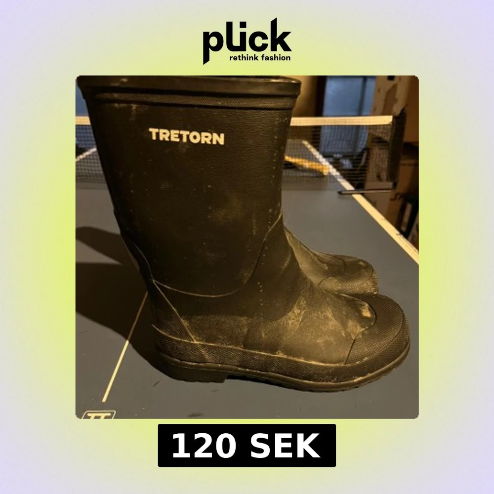 Svarta klassiska gummistövlar från Tretorn med robust sula och diskret logga på sidan. Storlek 33. Gott brukaskick.