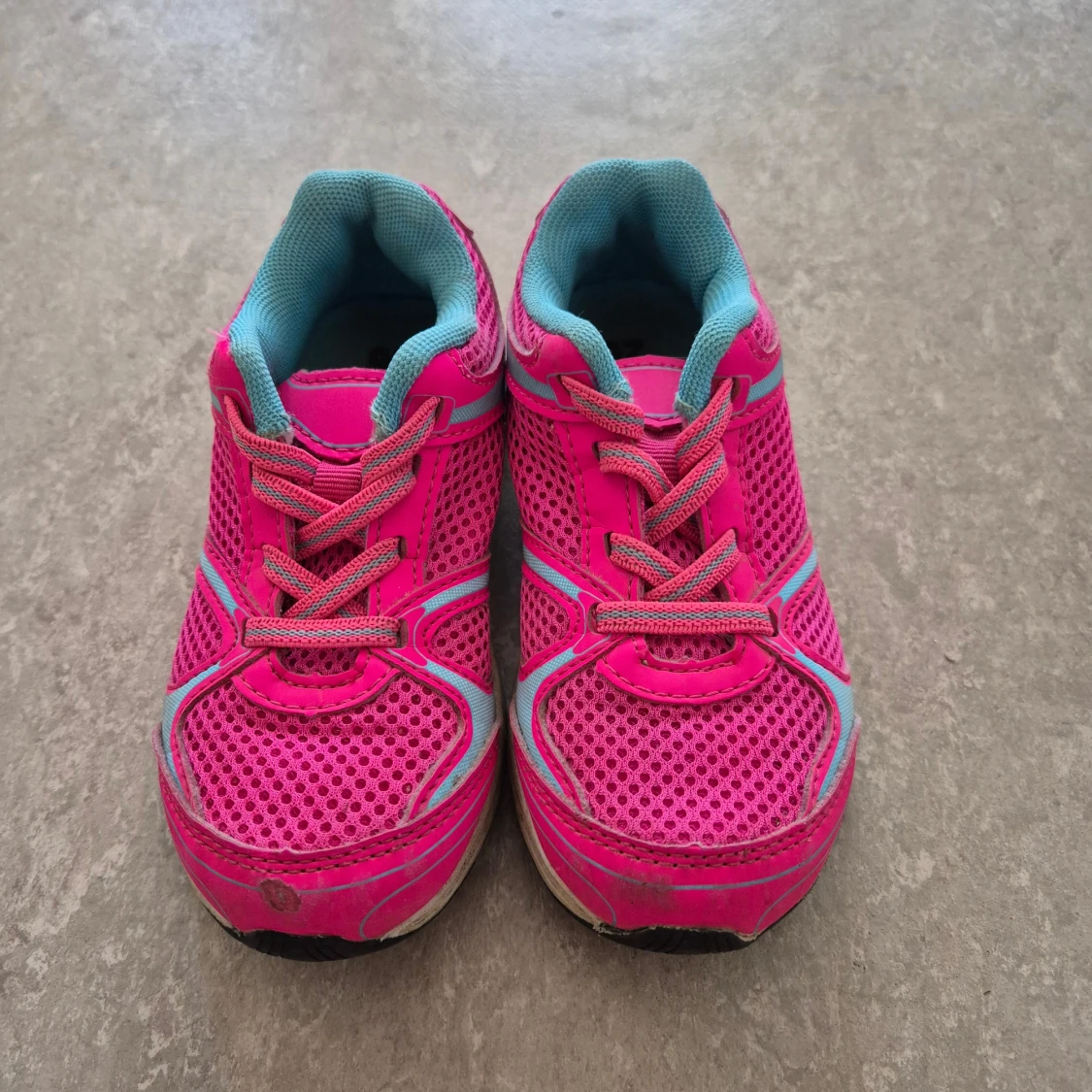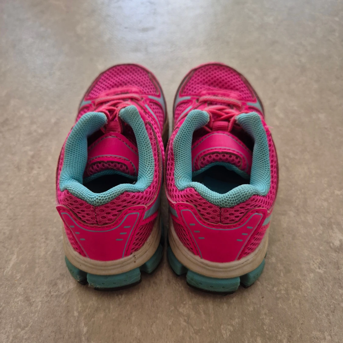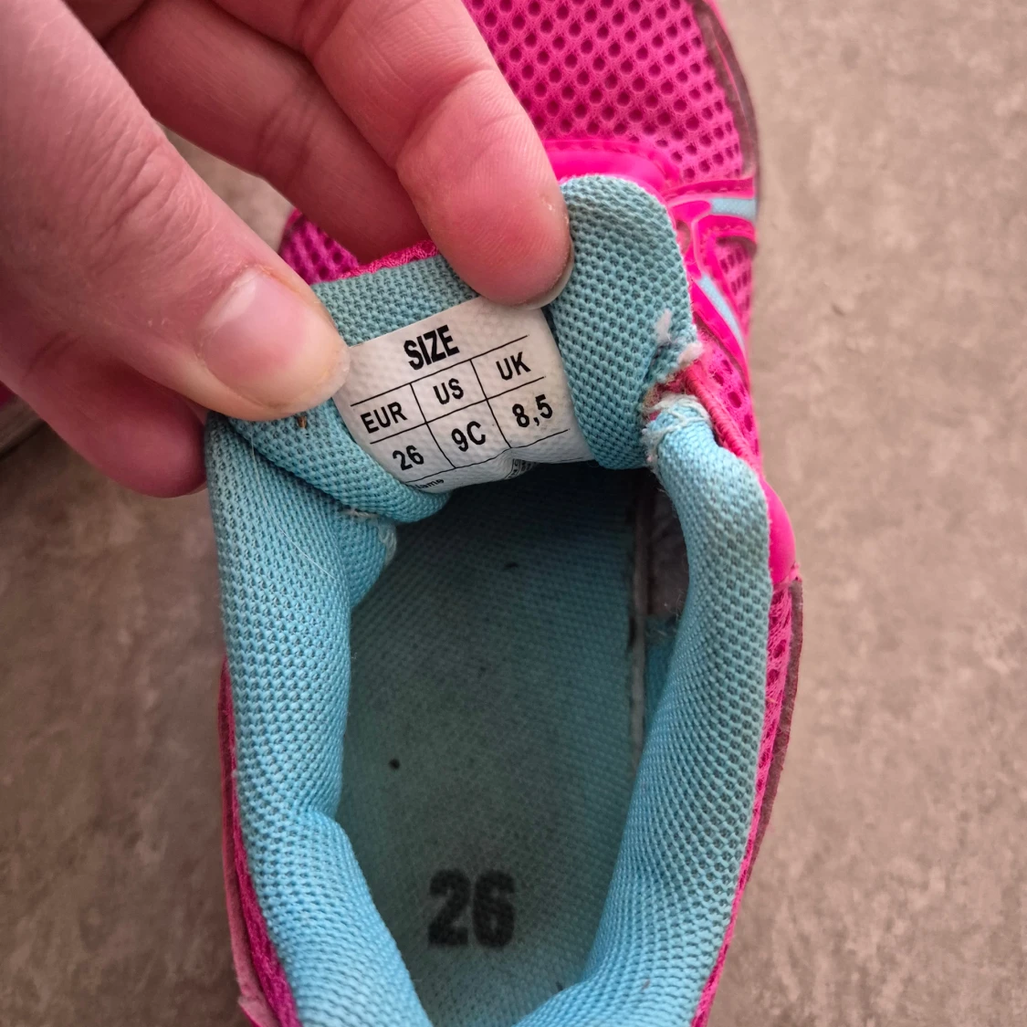 Snygga sneakers i stark rosa med turkosa detaljer och mesh-ytor för bra ventilation. Skorna har snörning och en sportig, rejäl sula med bra grepp. Perfekta för dig som gillar färg och vill sticka ut. Storlek 26.