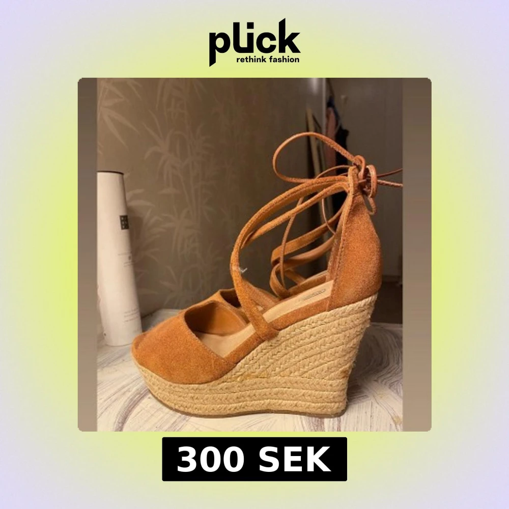 Snygga sandaler frÄn UGG i brun mocka med höga flÀtade kilklackar och knytband runt vristen. Skorna har öppen tÄ och plattformsula, vilket ger en somrig och trendig look. Perfekta till bÄde jeans och klÀnning för en avslappnad stil. Skorna Àr i gott skick förutom en liten flÀck pÄ ena skons framsida som sÀkert gÄr att tvÀtta av! Storlek 38.