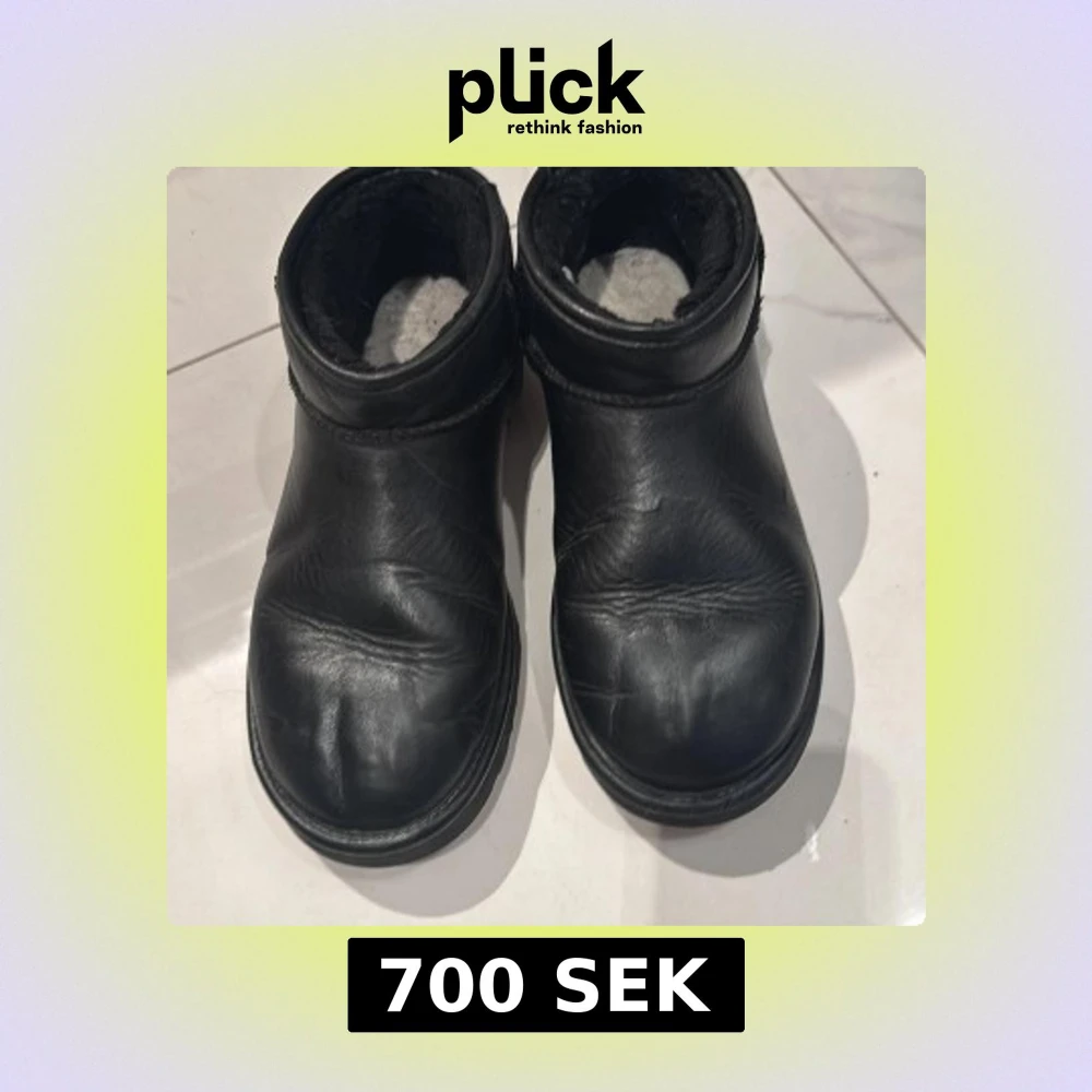 Säljer ett par svarta boots från UGG i skinn med mjukt foder. Perfekta för kyliga dagar med sin robusta sula och bekväma passform. Enkla att ta på och av med dragflik baktill.