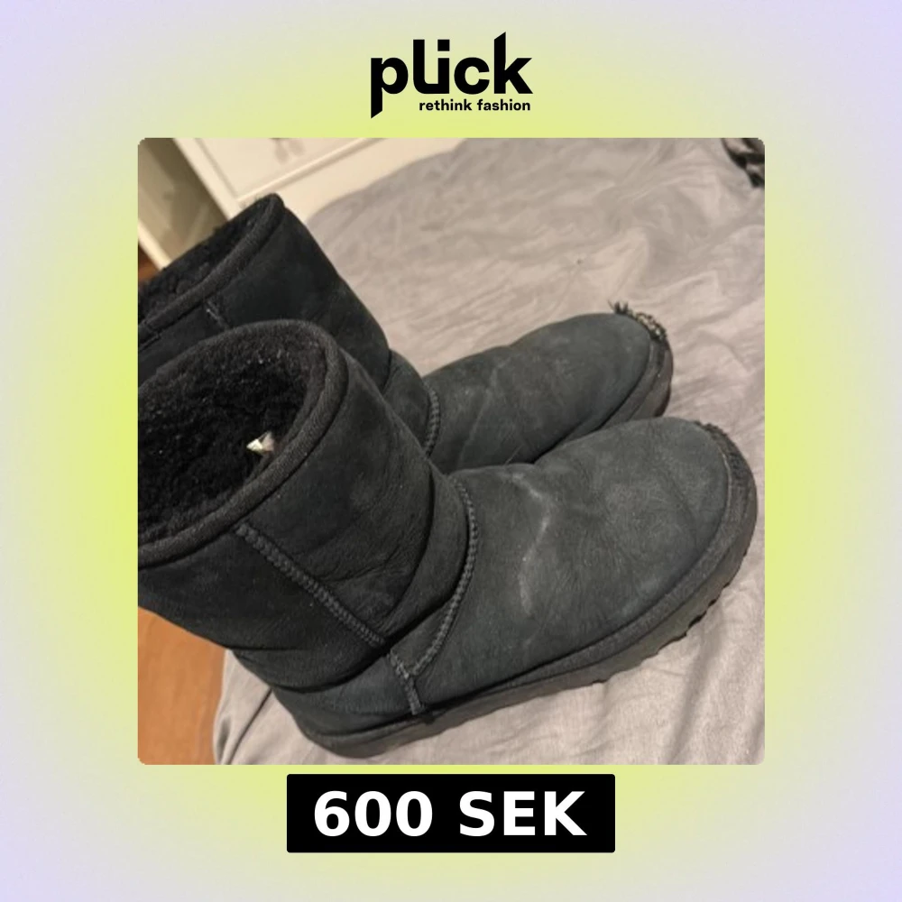 Mysiga svarta UGG boots i mjuk mocka med fluffigt foder på insidan. Nypris är 2750 kr. Dom har lite missfärgning av regn men inget man tänker på, dock även blivit uppskrapade där fram vid tån som man ser på bilderna därav priset