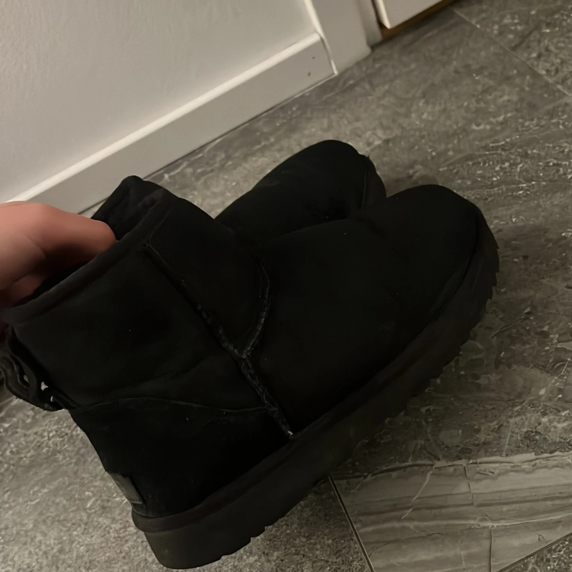 Svarta äkta uggs skor som inte längre kommer till användning. Använd en vinter.