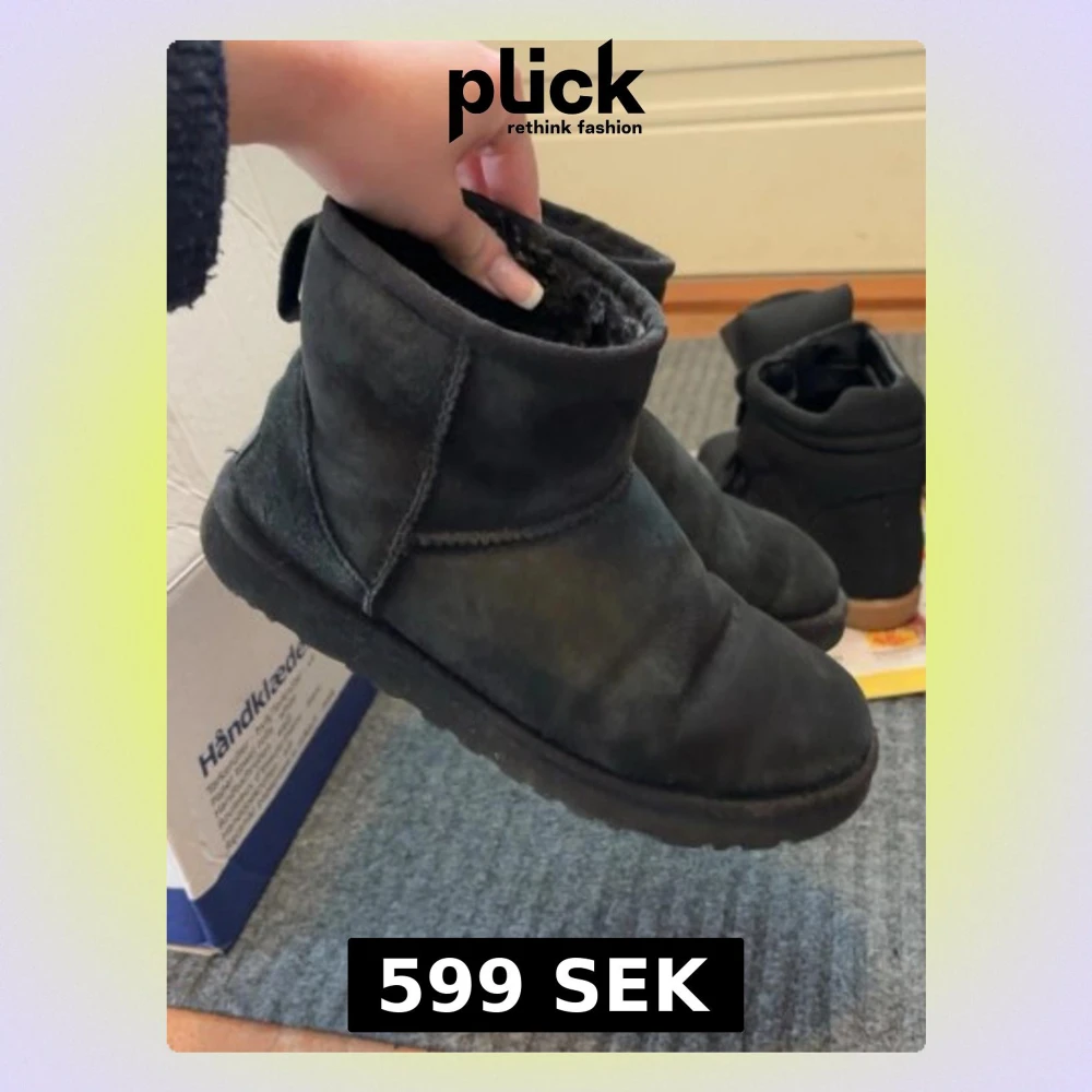 Säljer mina svarta uggs i storlek 40 då de inte kommer till användning💕skorna är helt ny-impregnerade med en professionell impregnerings-spray som får de att hålla bättre🫶🏼har haft de ett tag men inte använt på några säsonger. Givetvis är de äkta. Nypris 2300kr💘