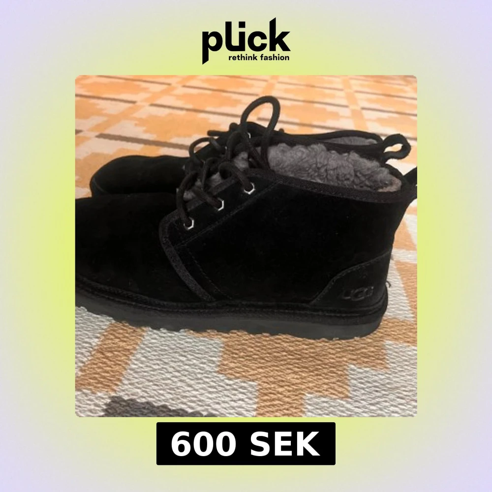 Svarta kängor från UGG med mjukt grått foder och snörning framtill. Yttermaterialet är mocka och sulan är robust med UGG-logga undertill. Perfekt för kalla dagar med sin fluffiga insida och klassiska look. Här finns beskrivning på modellen: https://www.zalando.se/ugg-neumel-sportiga-snoerskor-black-ug112m008-q11.html