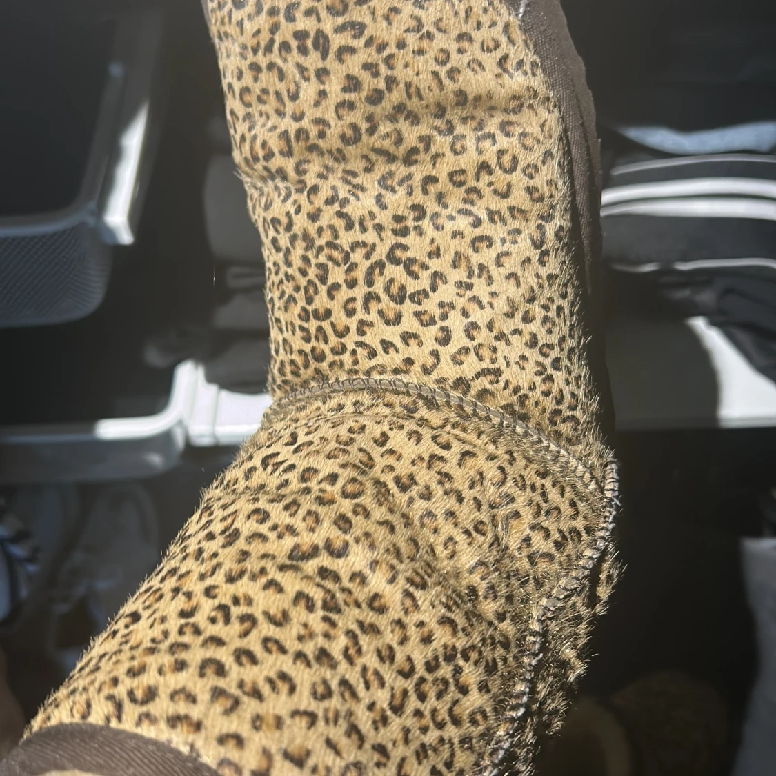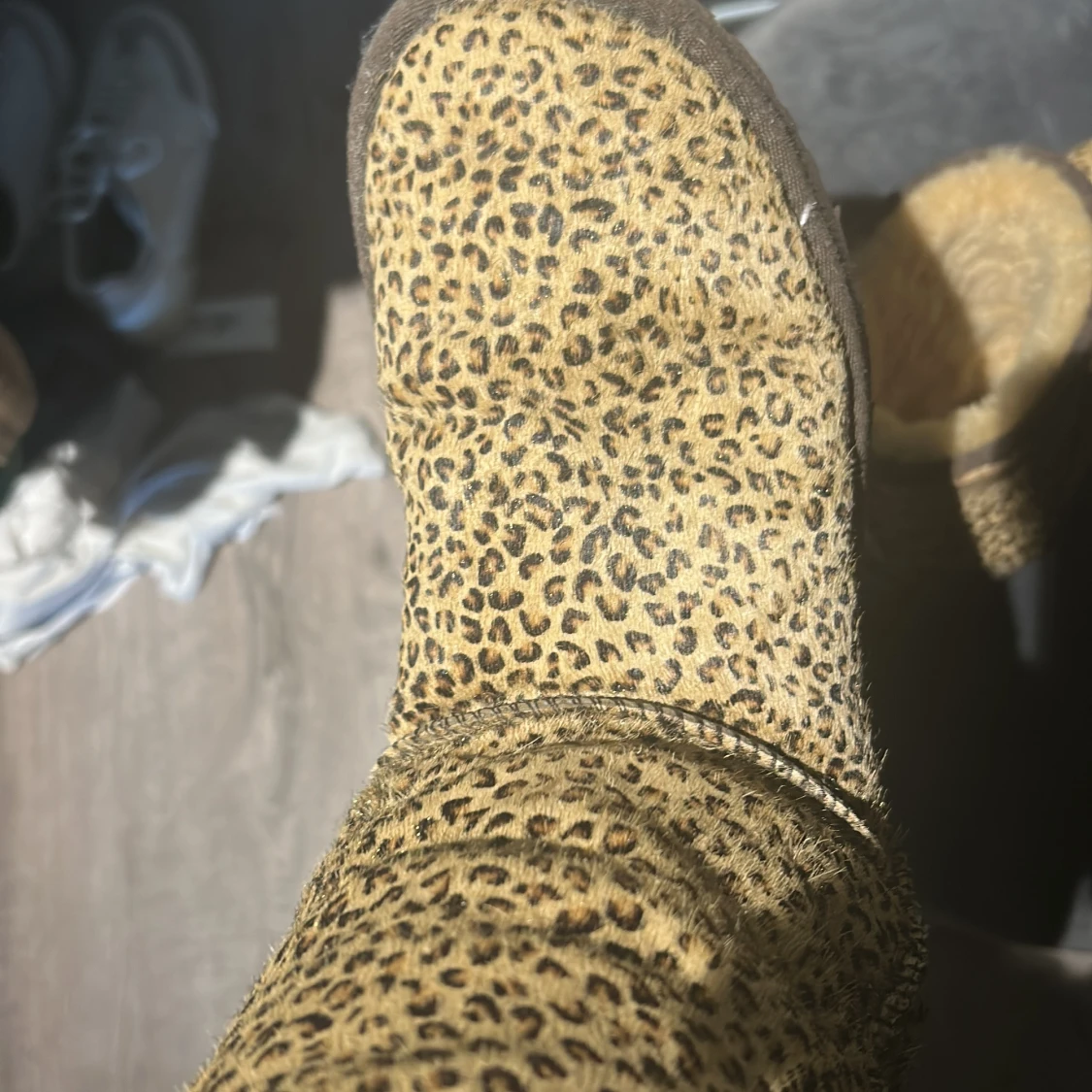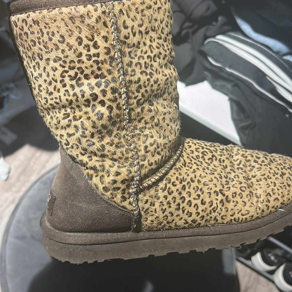 Säljer ett par UGG boots med leopardmönstrad ovandel i beige och bruna toner. Skorna har mjukt foder och mockadetaljer vid hälen. Perfekta för dig som vill sticka ut med ett djurmönstrat statement på fötterna.