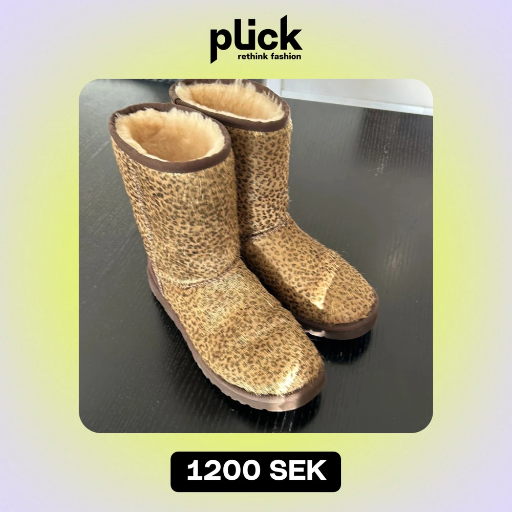 Säljer ett par snygga leopardmönstrade UGG boots i mycket bra skick. De är fodrade med mjuk päls och har en stabil sula för bra grepp. Perfekta för att hålla fötterna varma och stiliga under vintern. 🐆