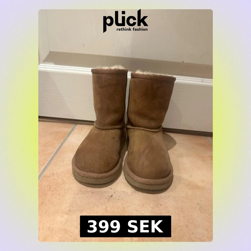 Mysiga bruna UGG boots i mjuk mocka med fluffigt fårskinnsfoder. Klassisk rund tå och platt sula, perfekta för kalla dagar. Märket syns tydligt bak på hälen. Storlek 25😽💓