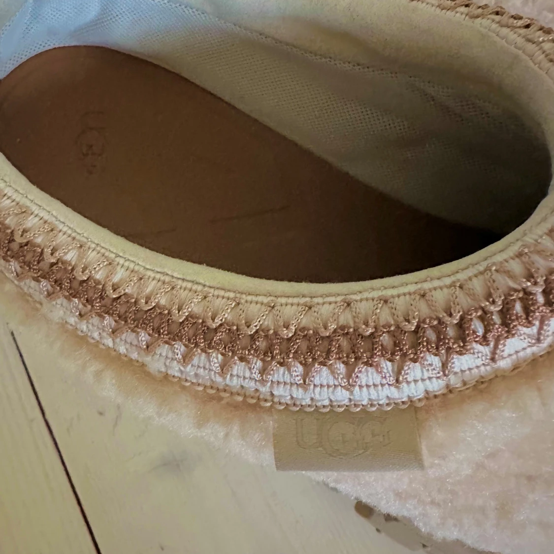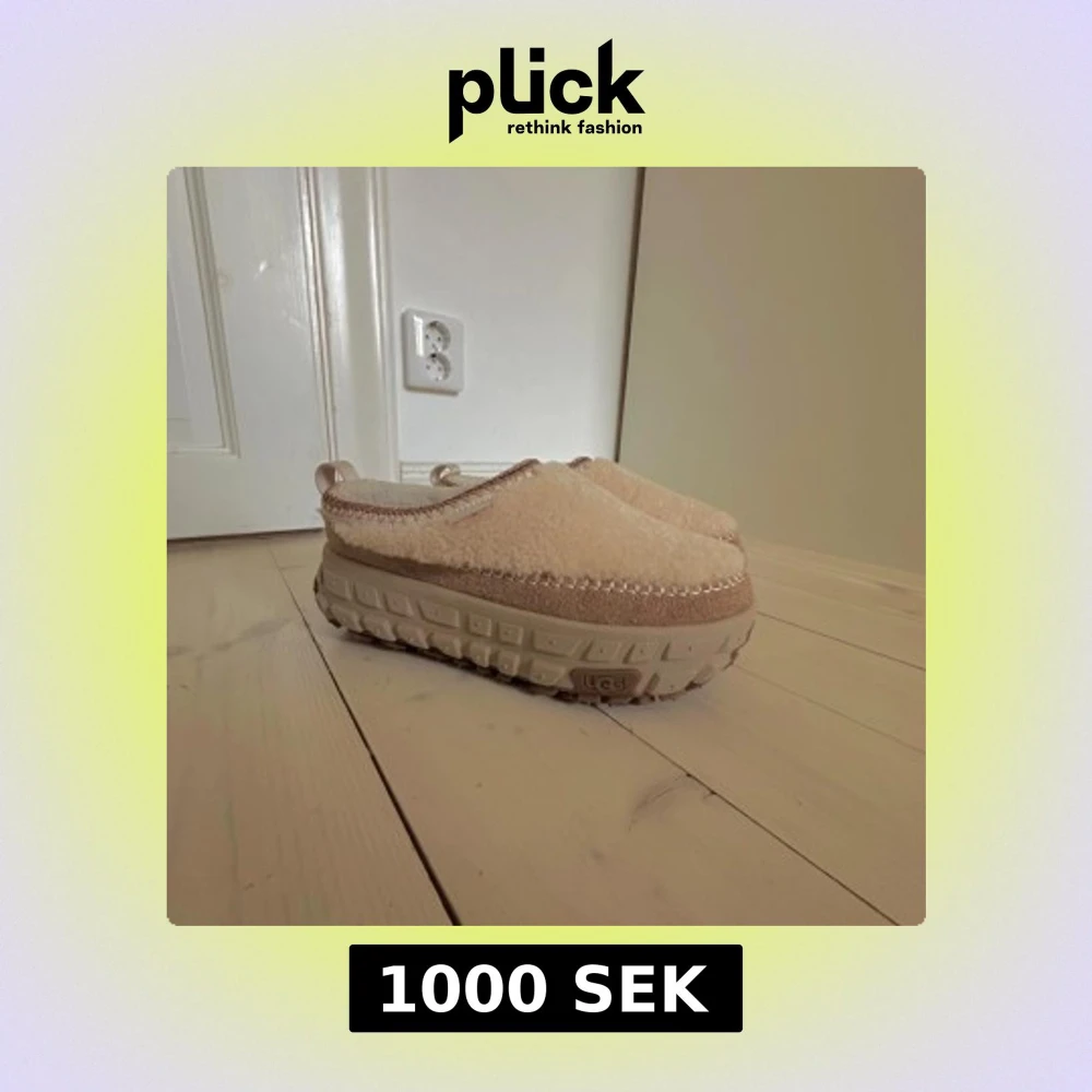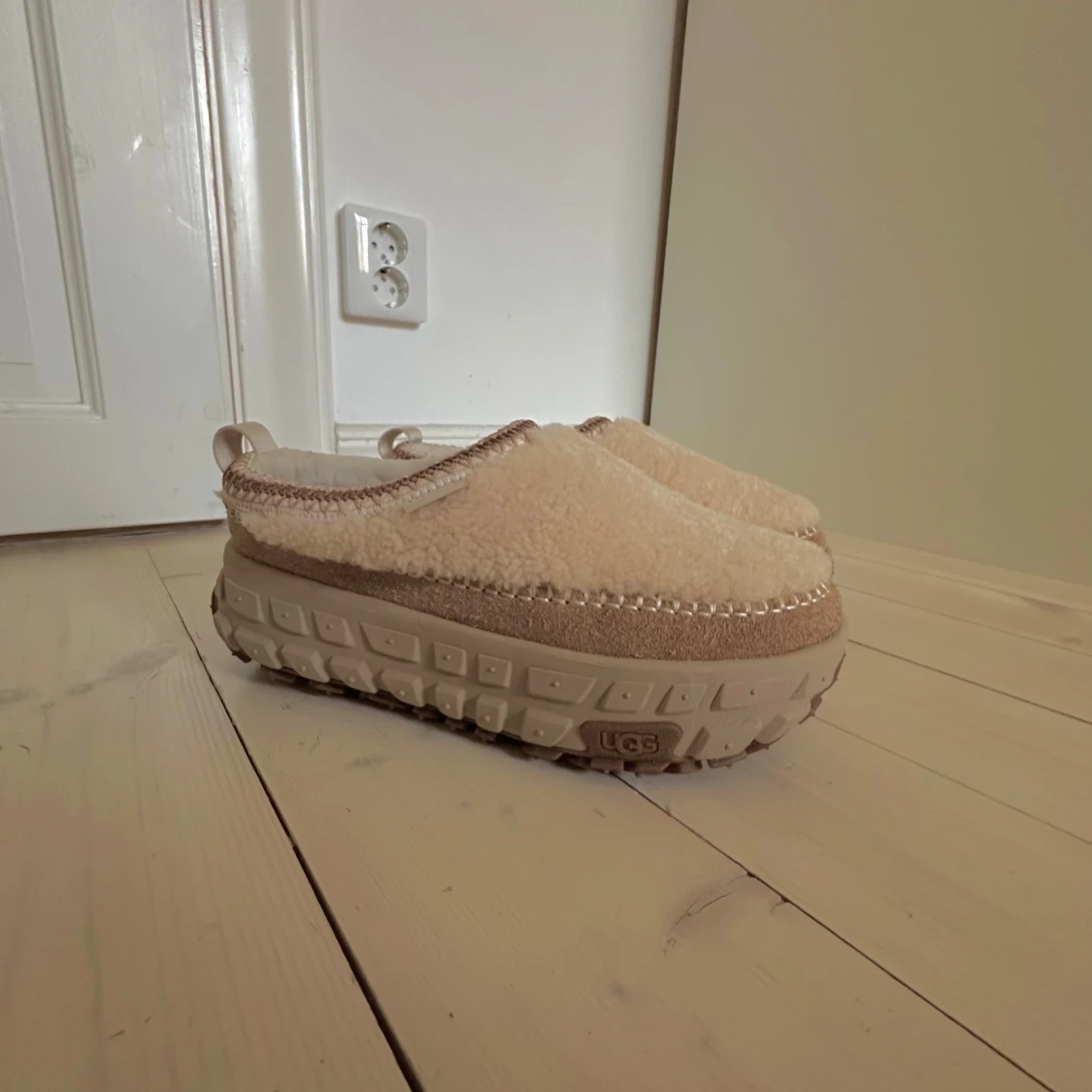UGG slip-ons i beige med fluffigt teddyfoder och grov sula. Skorna har dekorativa sömmar runt öppningen och är tillverkade i syntet och mocka. Perfekta för dig som gillar chunky och mysiga skor med streetkänsla. Endast prövade aldrig använda. Nypris ca 2500 kr.