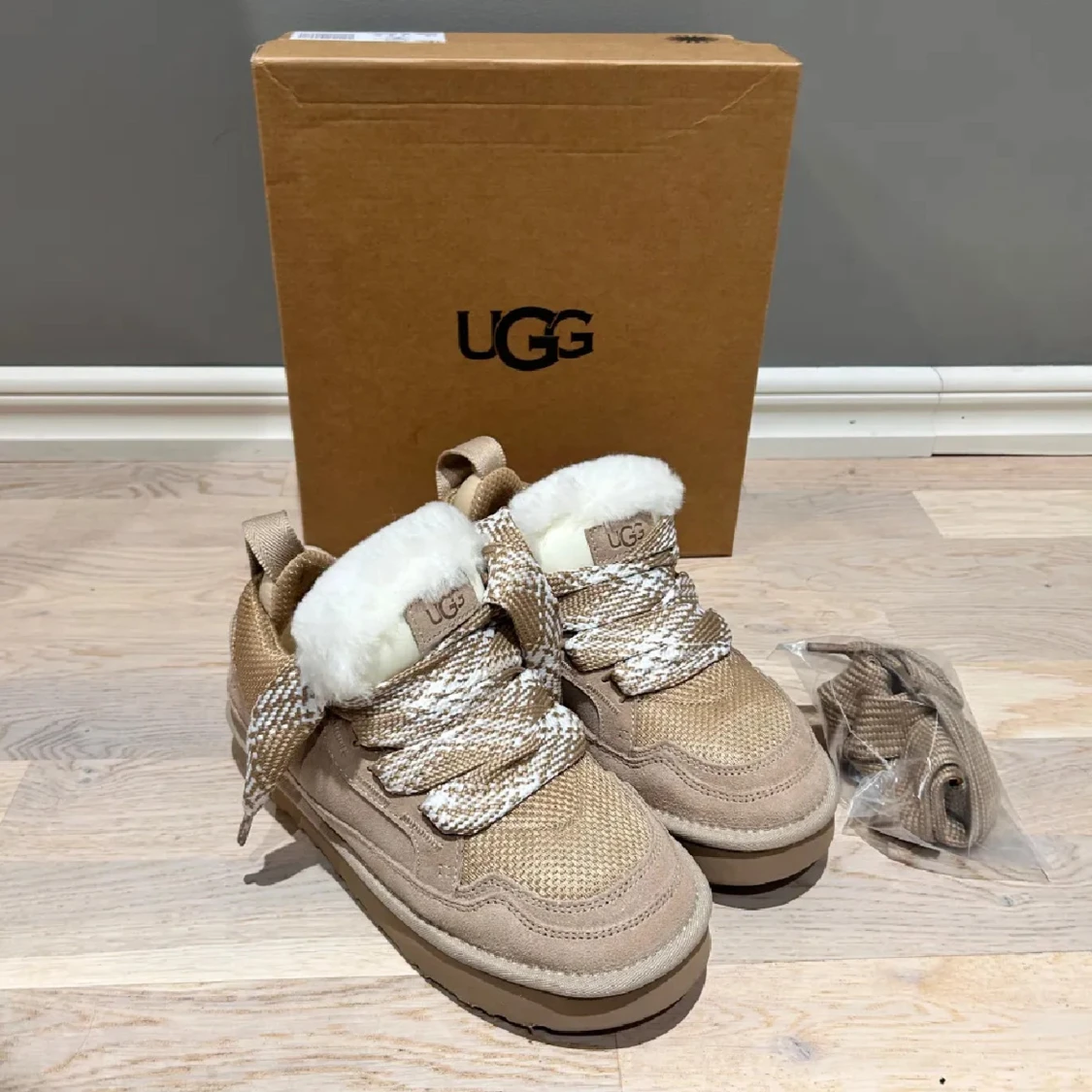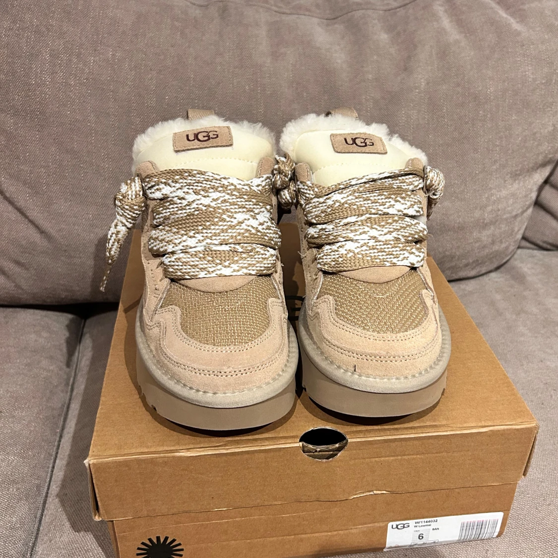 Säljer dessa helt nya ugg lowmel i färgen Sand. Väldigt fin beige färg som är populär denna vinter. Box tillkommer! Skorna är i storlek 37. Väldigt trendiga skor som jag säljer till ett bra pris! Hör av er vid funderingar!