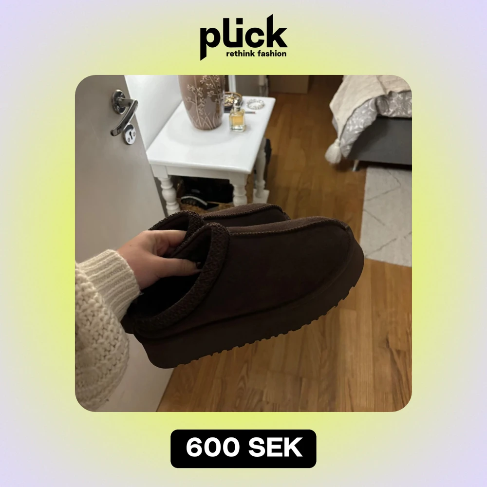 Säljer ett par bruna mockaskor. De är supermysiga och perfekta för höst och vinter. Skorna har en mjuk insida och en robust sula som ger bra grepp. Perfekta för att hålla fötterna varma och bekväma under kyliga dagar.