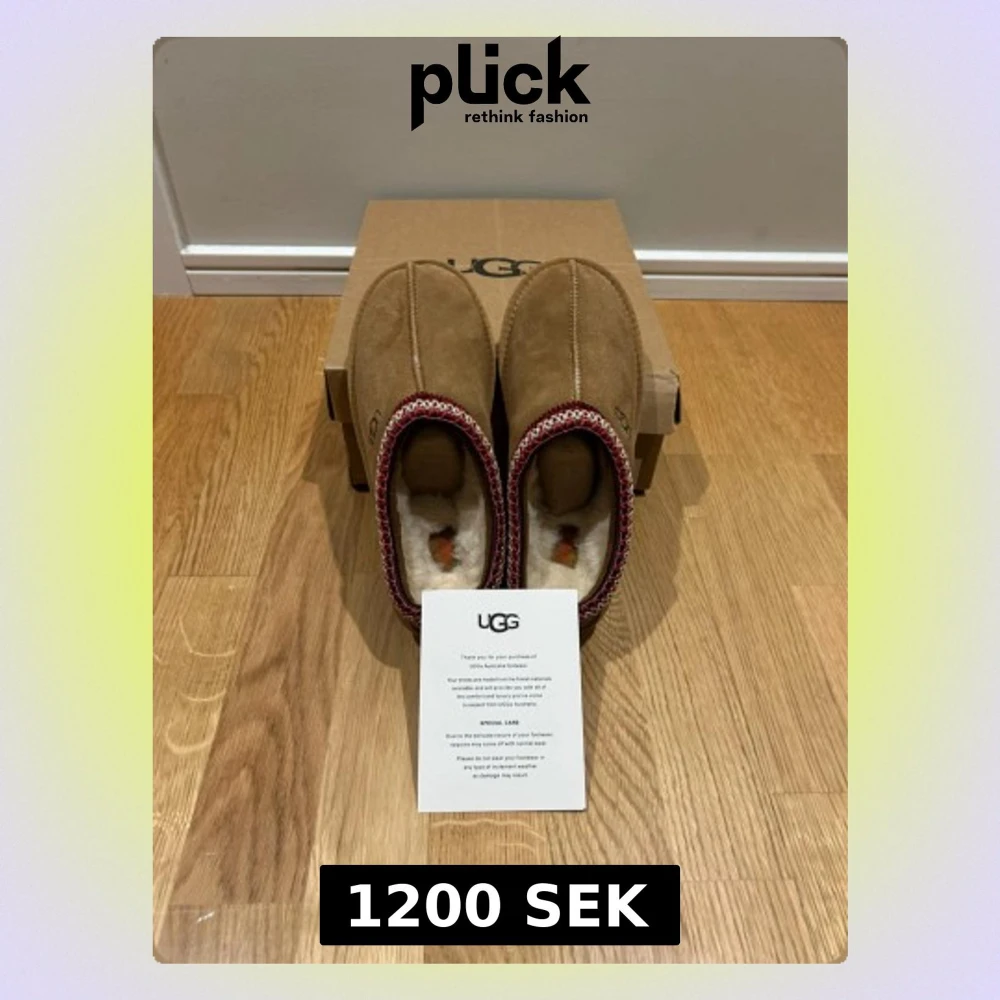 UGG slip-on mockasiner i beige mocka med fluffigt vitt foder. Snyggt broderad kant i rött och vitt samt röd detalj bak. Platt sula och rund tå, perfekt för mysiga dagar. Klassisk UGG-logga på sidan. Priset kan diskuteras och fraktar inom 24h
