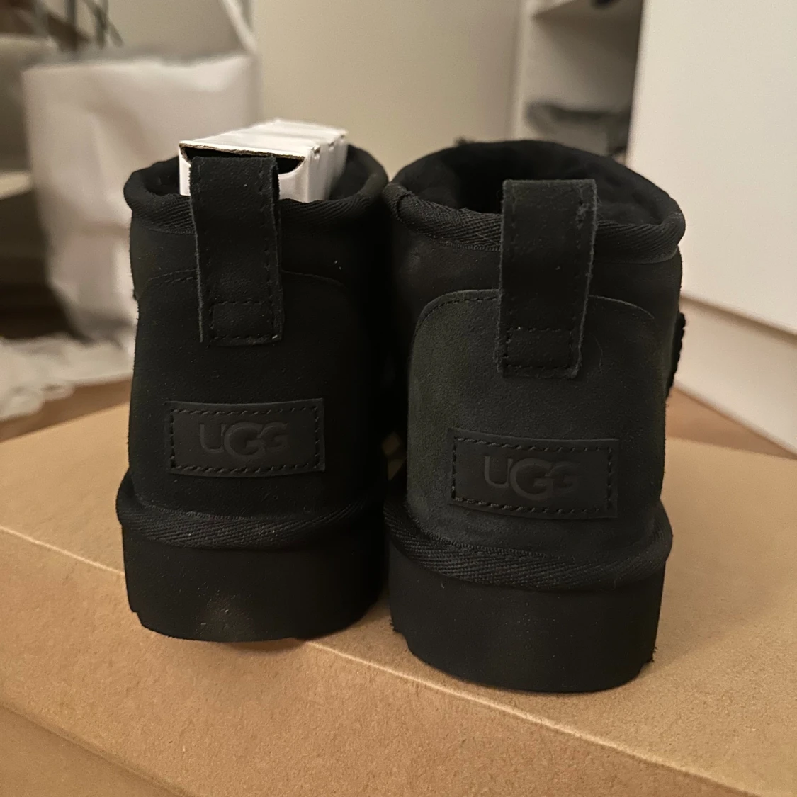 Säljer ett par svarta uggs, aldrig använda. Säljer dom på grund av att jag var för sen med och returnera och dom är lite för stora.