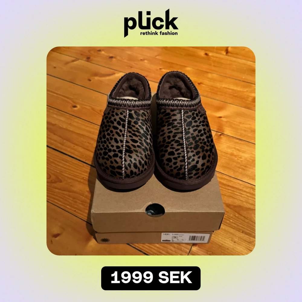 Säljer ett par supermysiga leopardmönstrade tofflor från UGG. De är i brunt och svart med en mjuk insida som håller fötterna varma. Perfekta för att glida runt hemma under kalla dagar. De är helt nya och kommer i originalkartong. Finns i storlekarna 36, 38, 39, 40, 42.