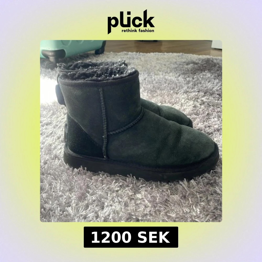 Klassiska svarta UGG boots i mjuk mocka med fluffigt foder och rund tå. Skorna har en platt sula och är äkta. Tyvärr har jag inte kvar lådan till de. De är använda sparsamt. Pris kan diskuteras 🤍