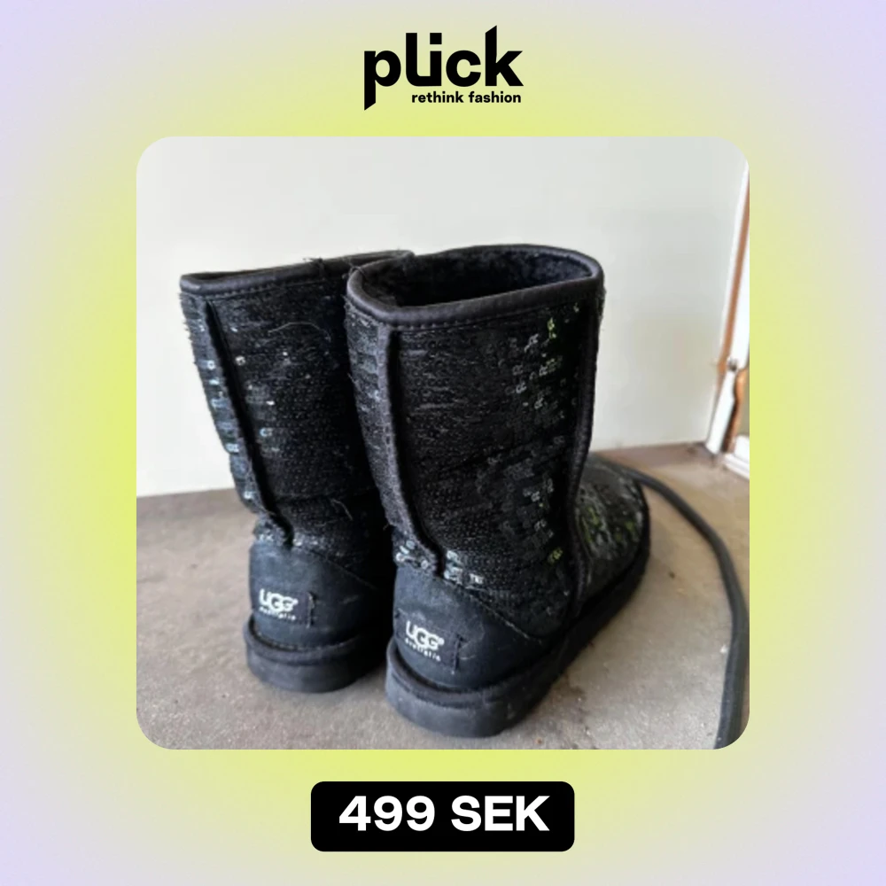 Svarta uggs med paljetter. Sparsamt använda. Storlek 38