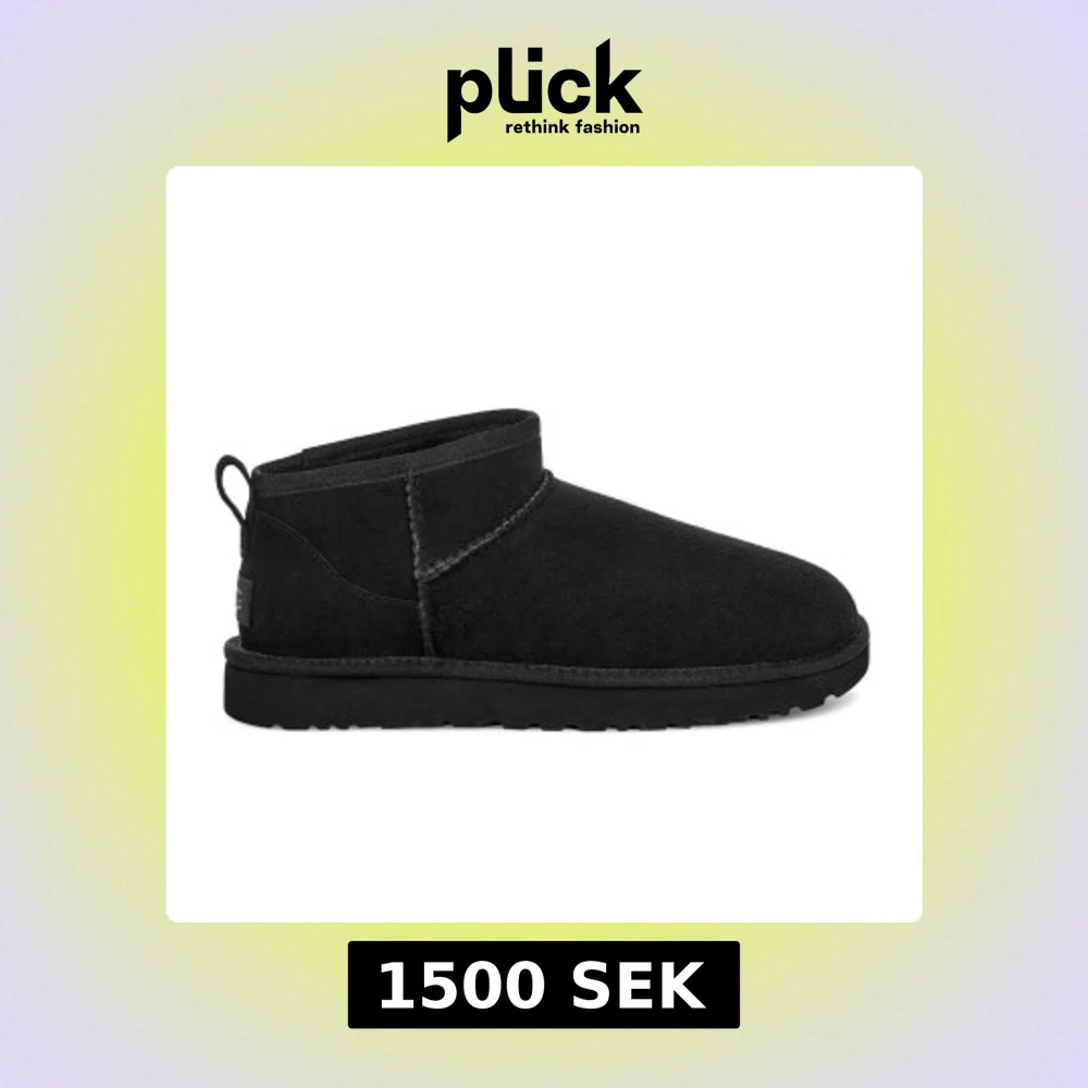 Säljer ett par klassiska svarta boots från UGG med låg skaft och rund tå. Skorna har en mjuk och varm insida, perfekt för kyliga dagar. Utsidan är i mocka och sulan är platt och robust. Enkla att ta på med dragflik bak.