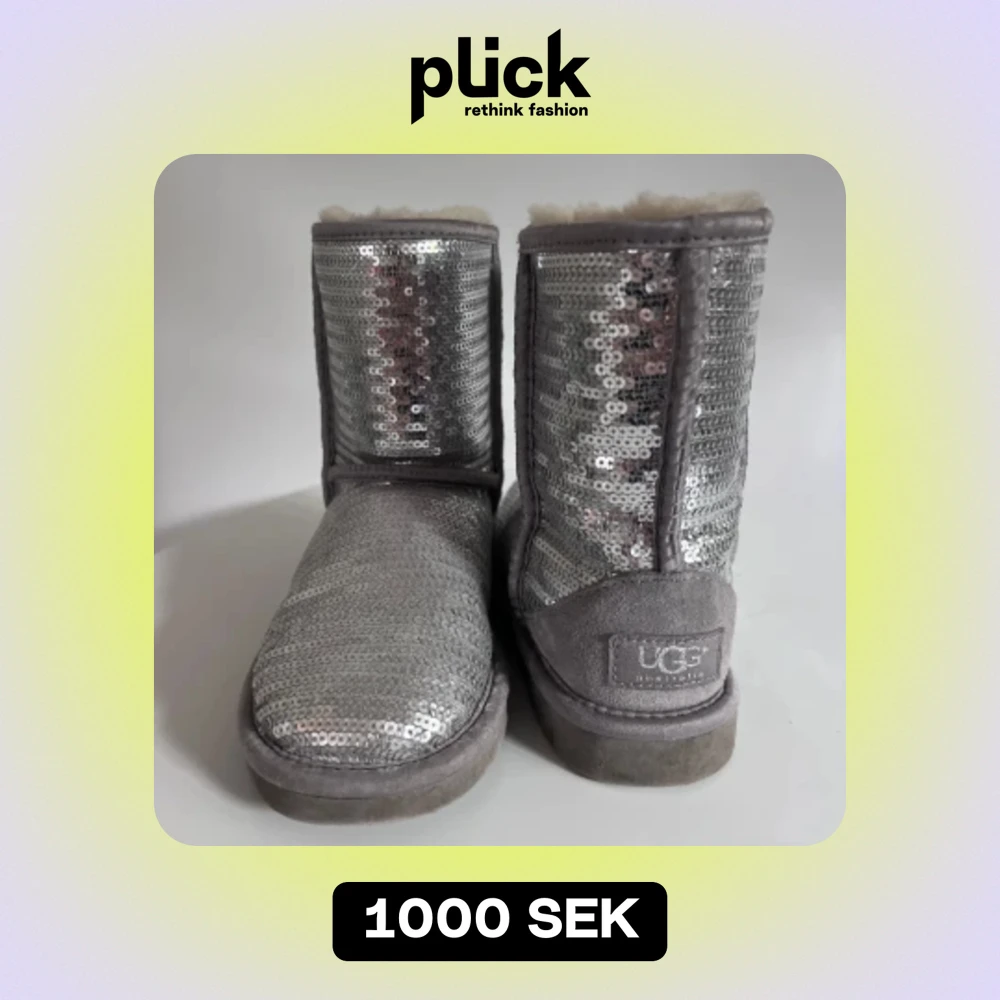 Ett par jättefina Uggs skor för barn med silvriga paljetter. Skorna är varma och bekväma. Använda ett par fåtal gånger, ser ut som nya 😍🪩