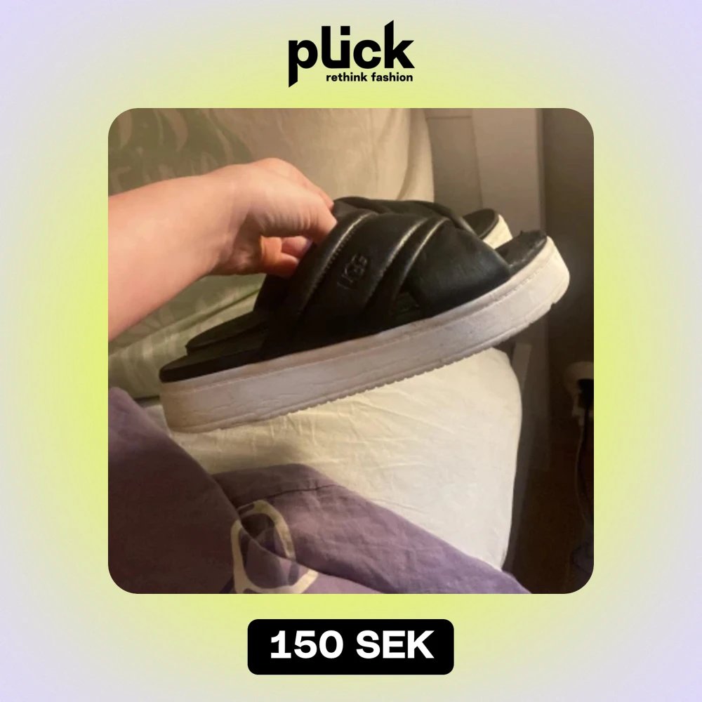 Ett par svarta uggs toflor med vit sula. De är i ganska bra skick. De kosta nya 800 kr ungefär men säljer dessa för 150 kr + frakt. De är i storlek 37