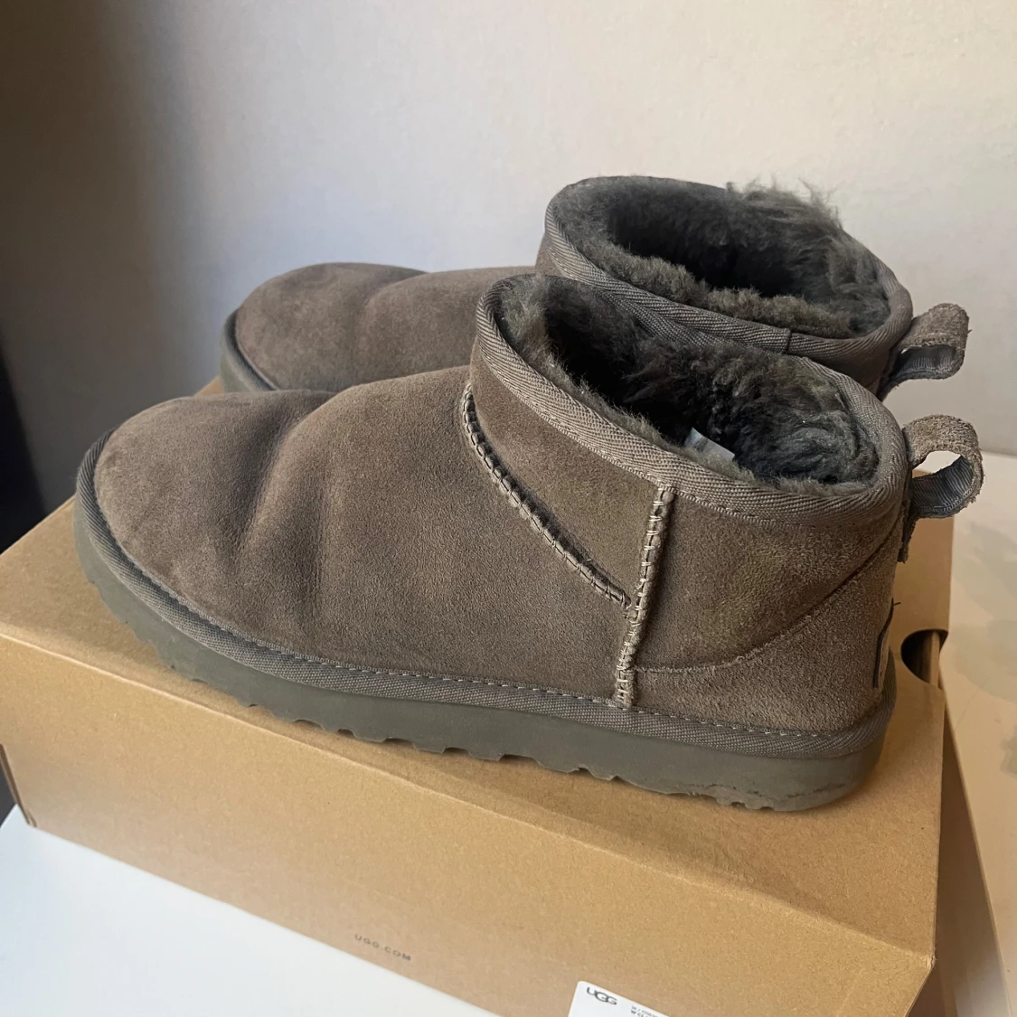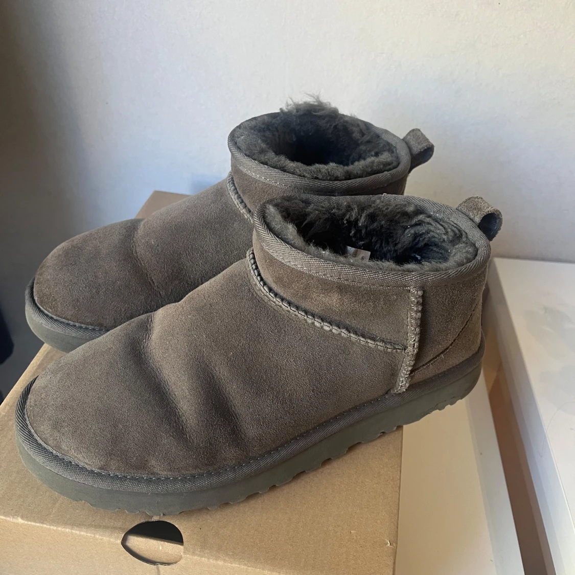 Gråa classic ultra mini uggs i storlek 39. De är i bra skick men finns tecken på användning