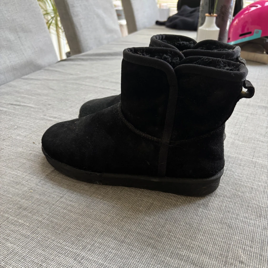 Svarta boots i mocka med rund tå och platt sula. Skorna har en enkel och stilren design med kort skaft och mjukt foder på insidan, perfekta för kyligare dagar. Passar till det mesta och är superbekväma att dra på sig.