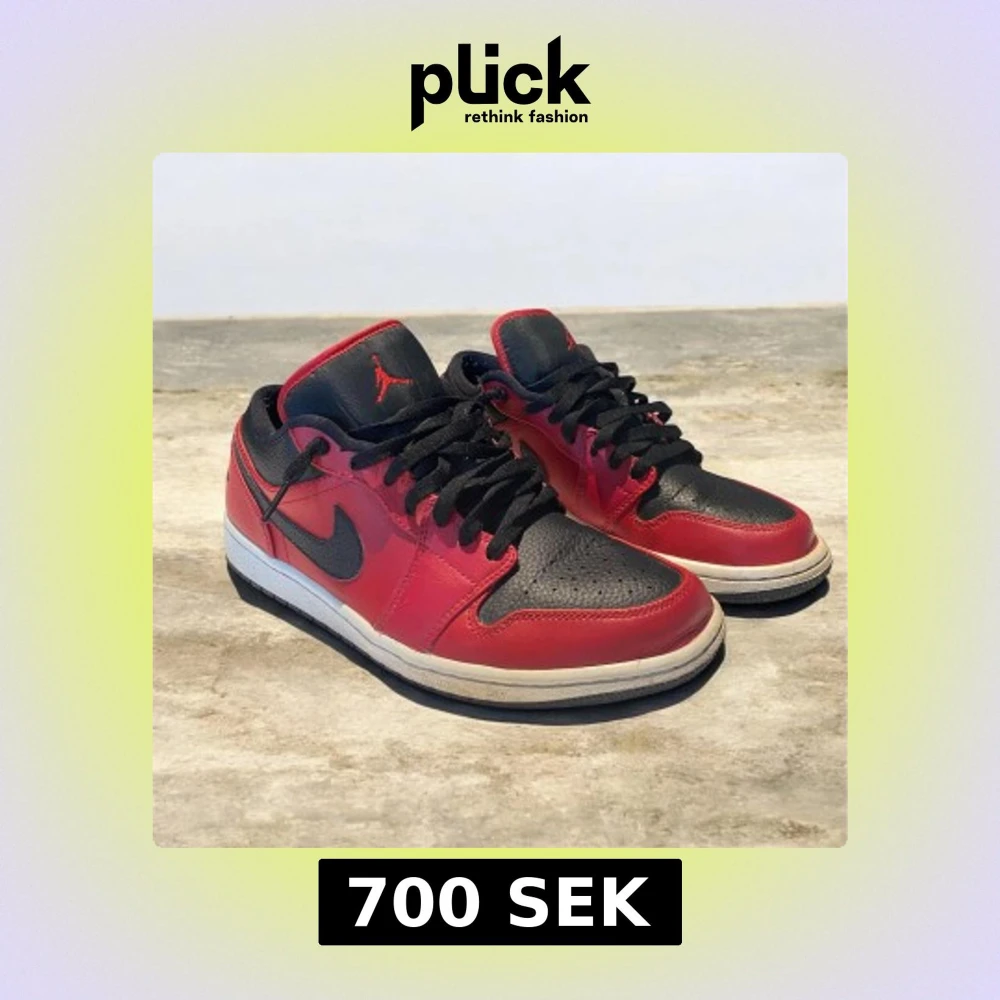 Air Jordan 1 Low i bra skick. Använda ett flertal gånger. Finns lite slitage på insidan vid snörena som man kan se i tredje bilden. Förutom det inga defekter. Snygga och bekväma sneakers som fortfarande har mycket kvar att ge! Storlek: 44 (EU) Skick: Bra Originalförpackning ingår ej. Skicka gärna ett meddelande vid frågor!