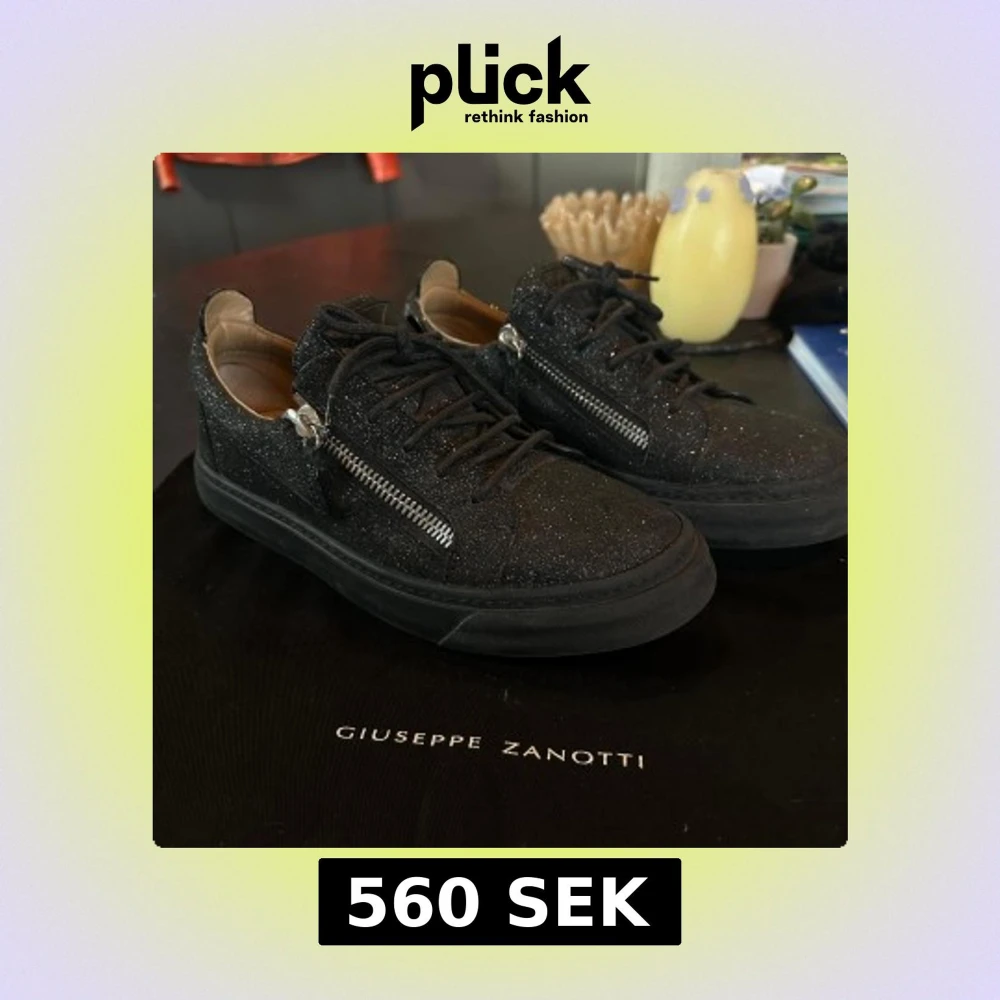 Säljer ett par svarta sneakers från Giuseppe Zanotti med glittrig yta och silverfärgade dragkedjor på sidorna. Skorna har rund tå, platt sula och klassisk snörning. Skorna är tillverkade i Italien och är perfekta för dig som vill sticka ut med stilrena detaljer. Är i väldigt bra skick endast lite slitna på undersidan men inget hål eller sådant. Skulle säga att skorna är ganska stora i storleken, jag som har 38/39 kan använda dem men de är stora. Skulle säga att de är bättre med strl. 39,5-40,5✨🖤