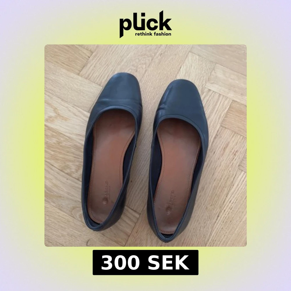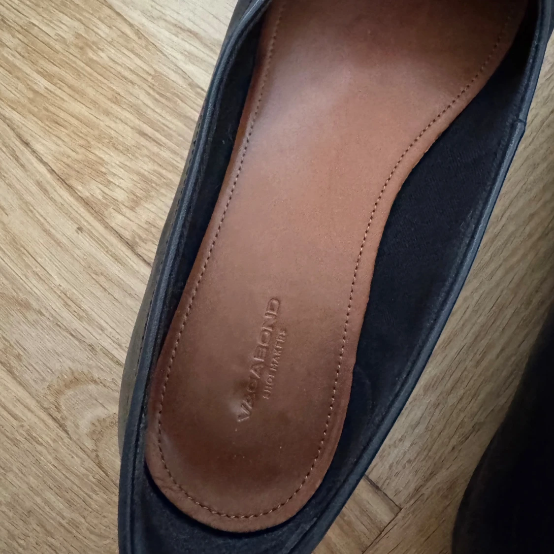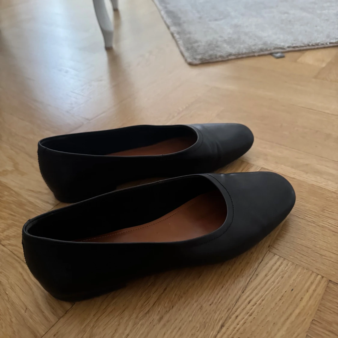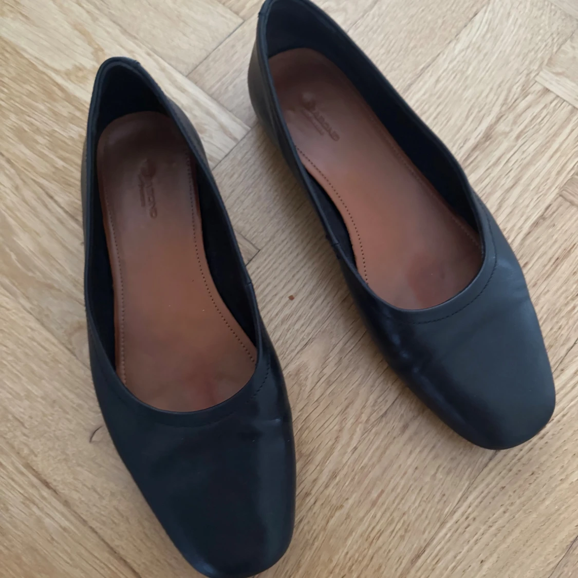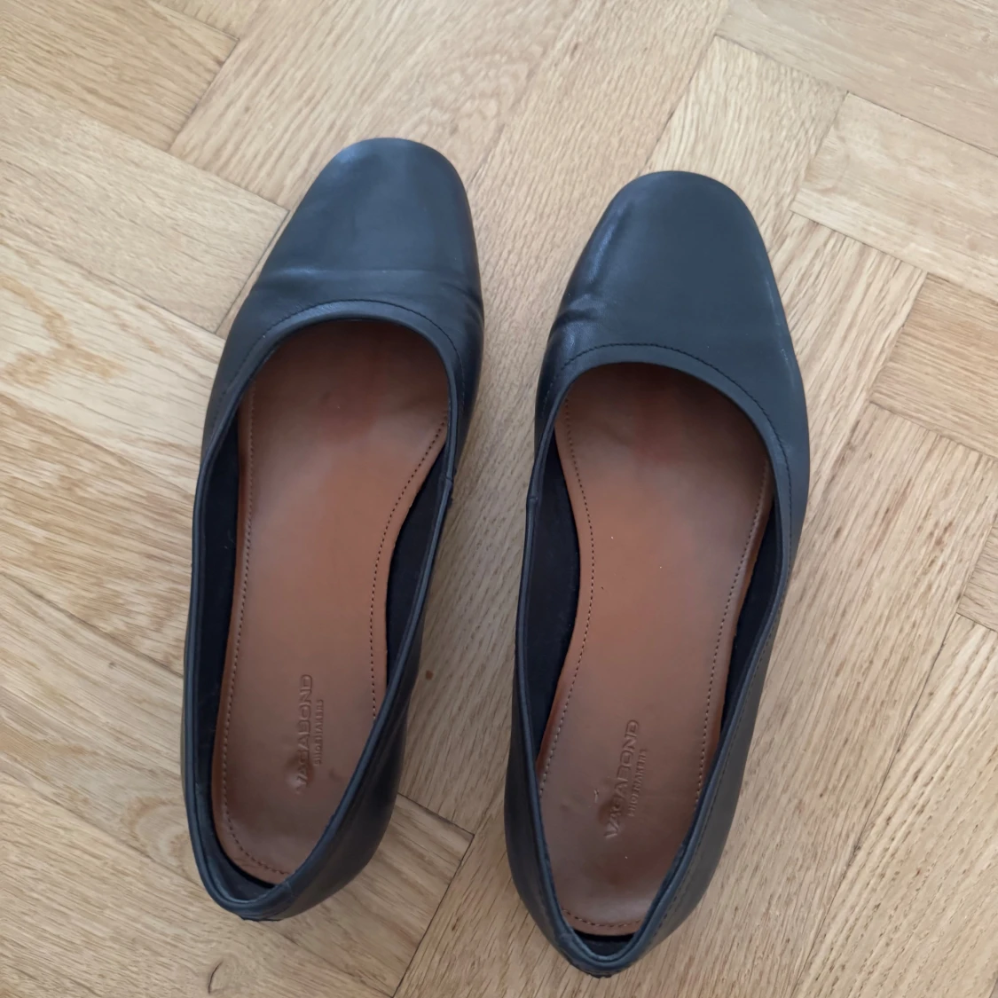 Stilrena svarta ballerinaskor från Vagabond i mjukt skinn. Modellen har en fyrkantig tå och låg platt sula.