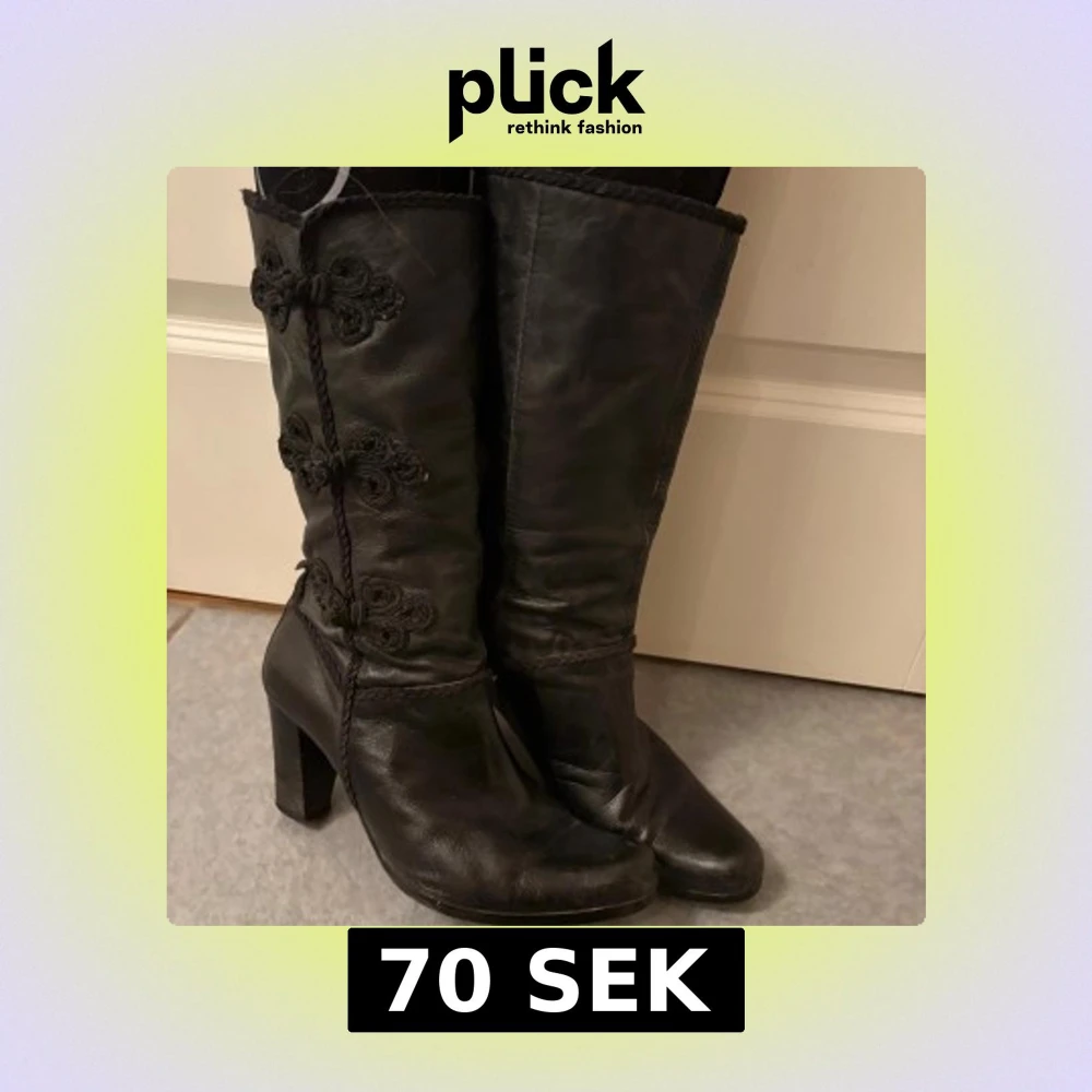 Stövlar från Vagabond i skinn med hög klack och dekorativa broderade detaljer längs skaftet. Rund tå och klassisk form. De är i fint skick, syns att de är lite använda.