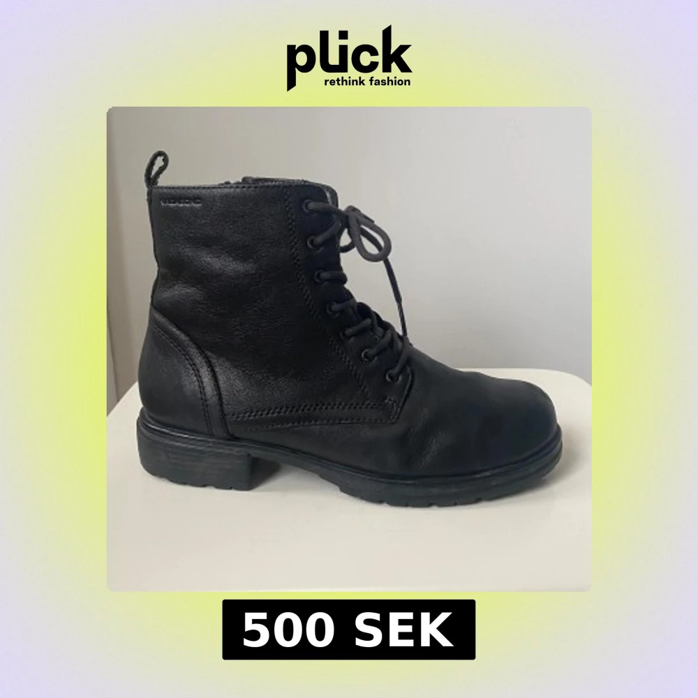 Stilrena svarta boots från Vagabond i äkta skinn med snörning och dragkedja på sidan. Grov sula för extra grepp och rund tå. Perfekta för dig som gillar en klassisk look med edge.