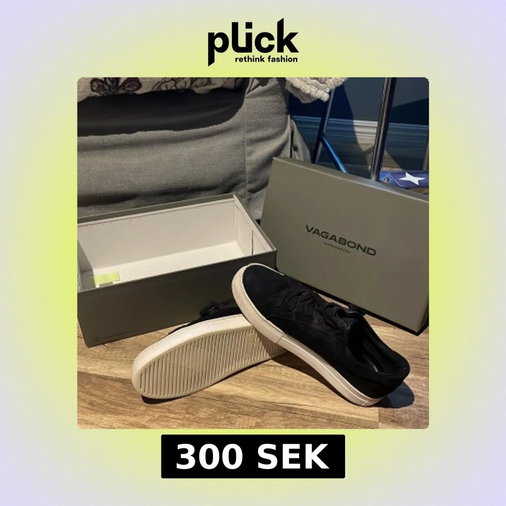 Svarta sneakers från Vagabond, modell Paul 2.0, med ovandel i mocka och klassisk vit platt sula. Skorna har rund tå och snörning framtill för en clean och stilren look. Ny pris runt 1000kr till 2000kr men jag säljer dem för 300. Pris kan diskuteras