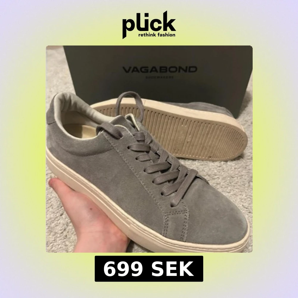 Snygga grå sneakers från Vagabond i mocka med snörning. Perfekta för en stilren look. Skorna har en ljus sula som ger en fin kontrast till det gråa.
