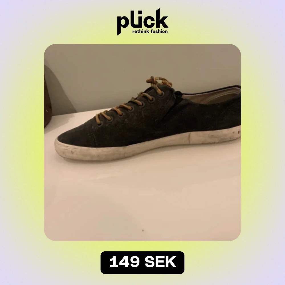 Skick 6/10 man kan bara tvätta de med tvål och vatten så går smutsen bort och de ser sprillans ut. Fotsulerna är lite slitna oxå🫡 Därför kommer jag sälja de billigt