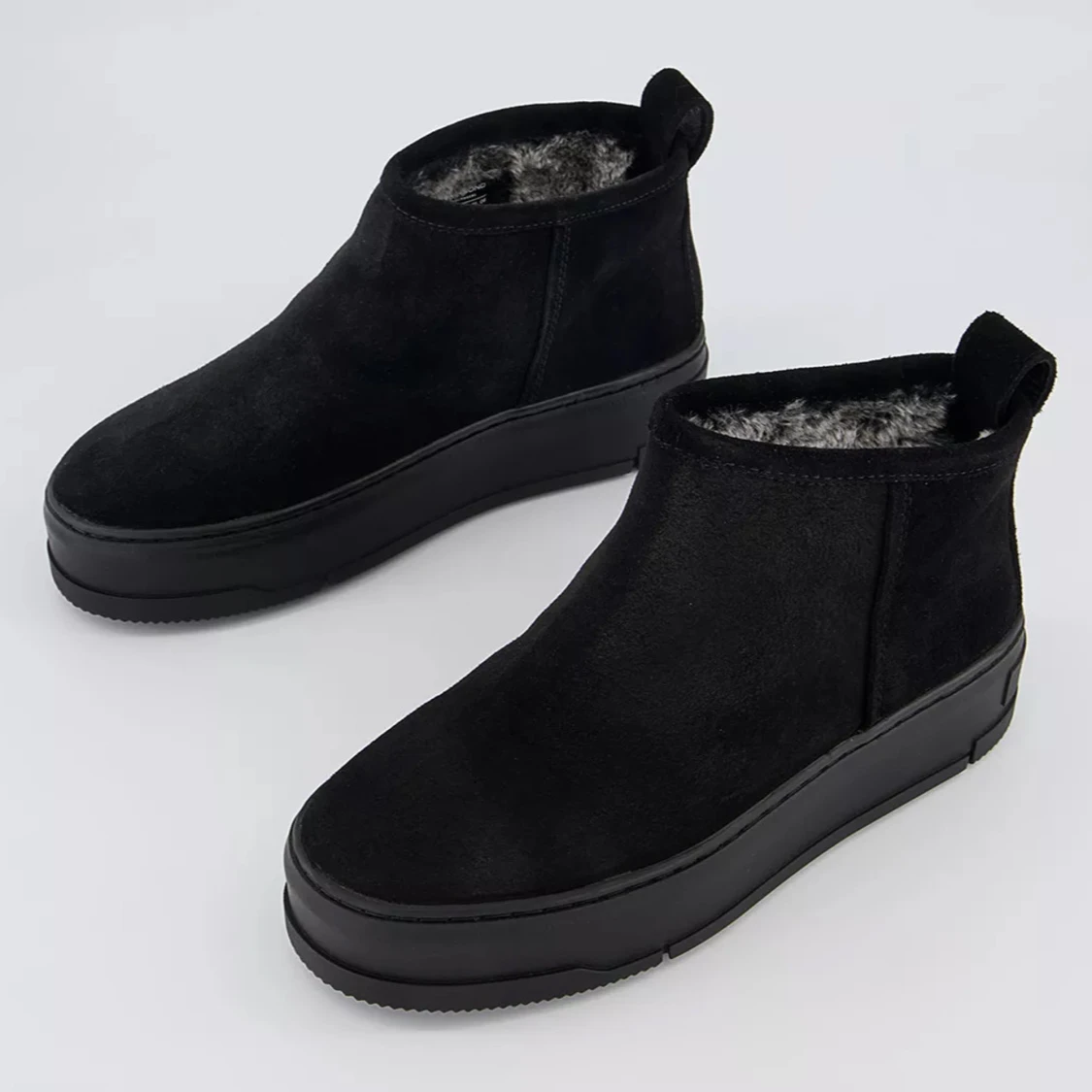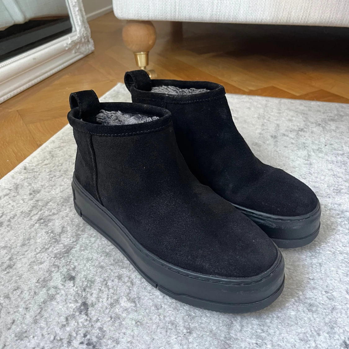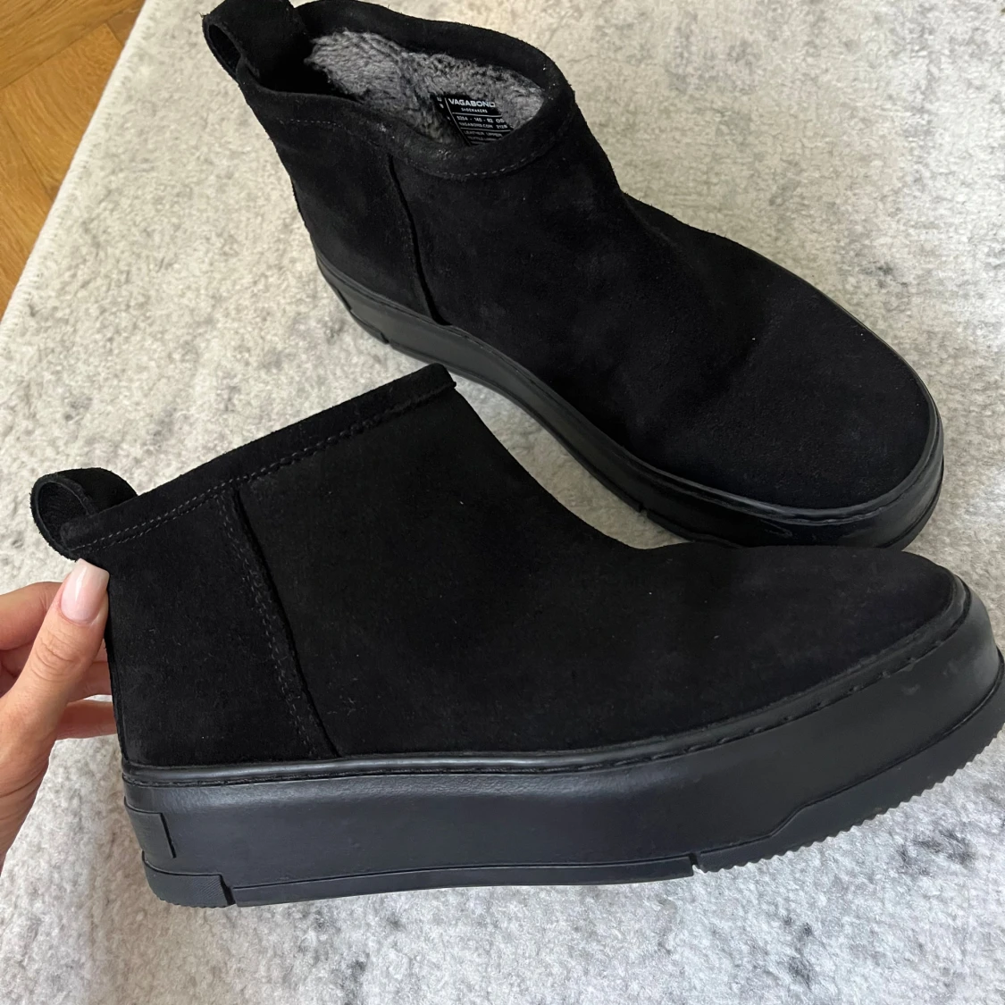 Säljer ett par Vagabond Judy boots i svart äkta mocka, stl 38. De är varmfodrade med mjukt fuskpälsfoder. Har platå på ca 3,5 cm och är varsamt använda så de är fortfarande i fint skick. Perfekta höstskor!