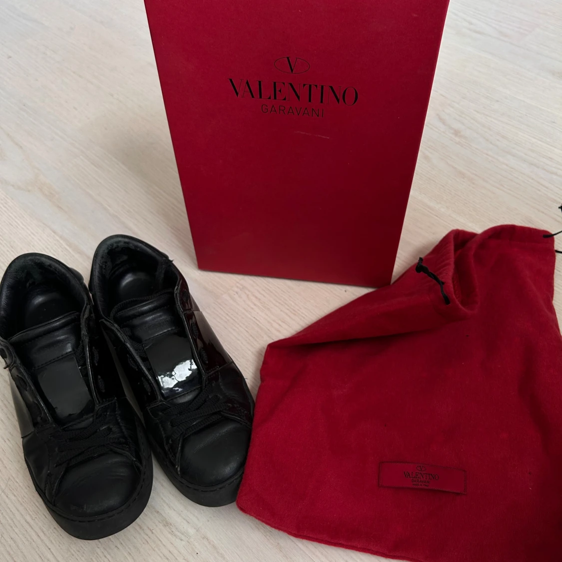 Säljer ett par helsvarta Valentino Garavani sneakers i skinn med klassisk låg siluett och snörning. Skorna har en chunky sula och diskreta detaljer, levereras med originalkartong och dustbag. Perfekta för dig som gillar lyxiga och stilrena sneakers.