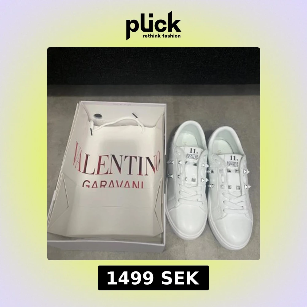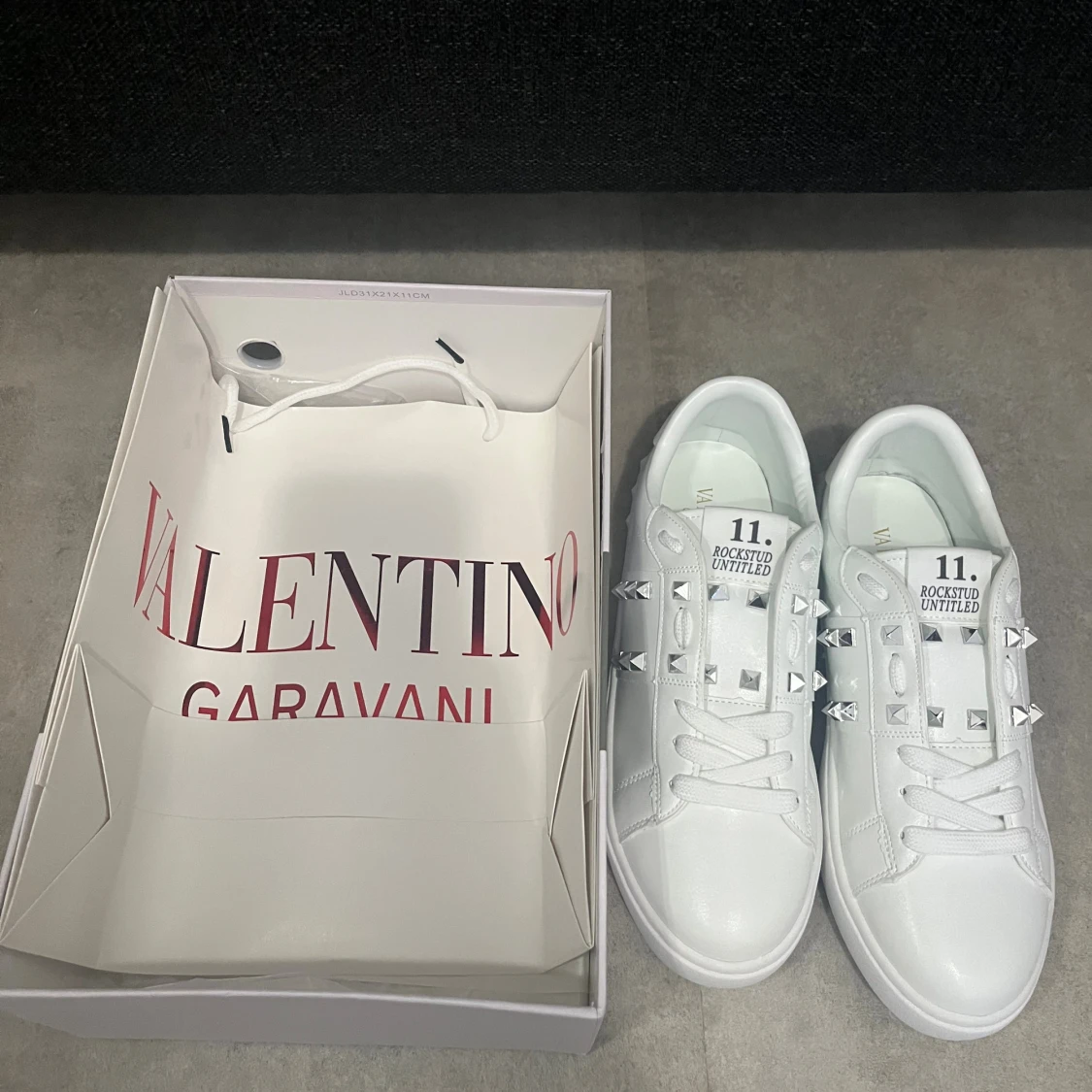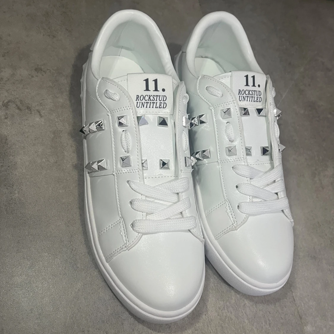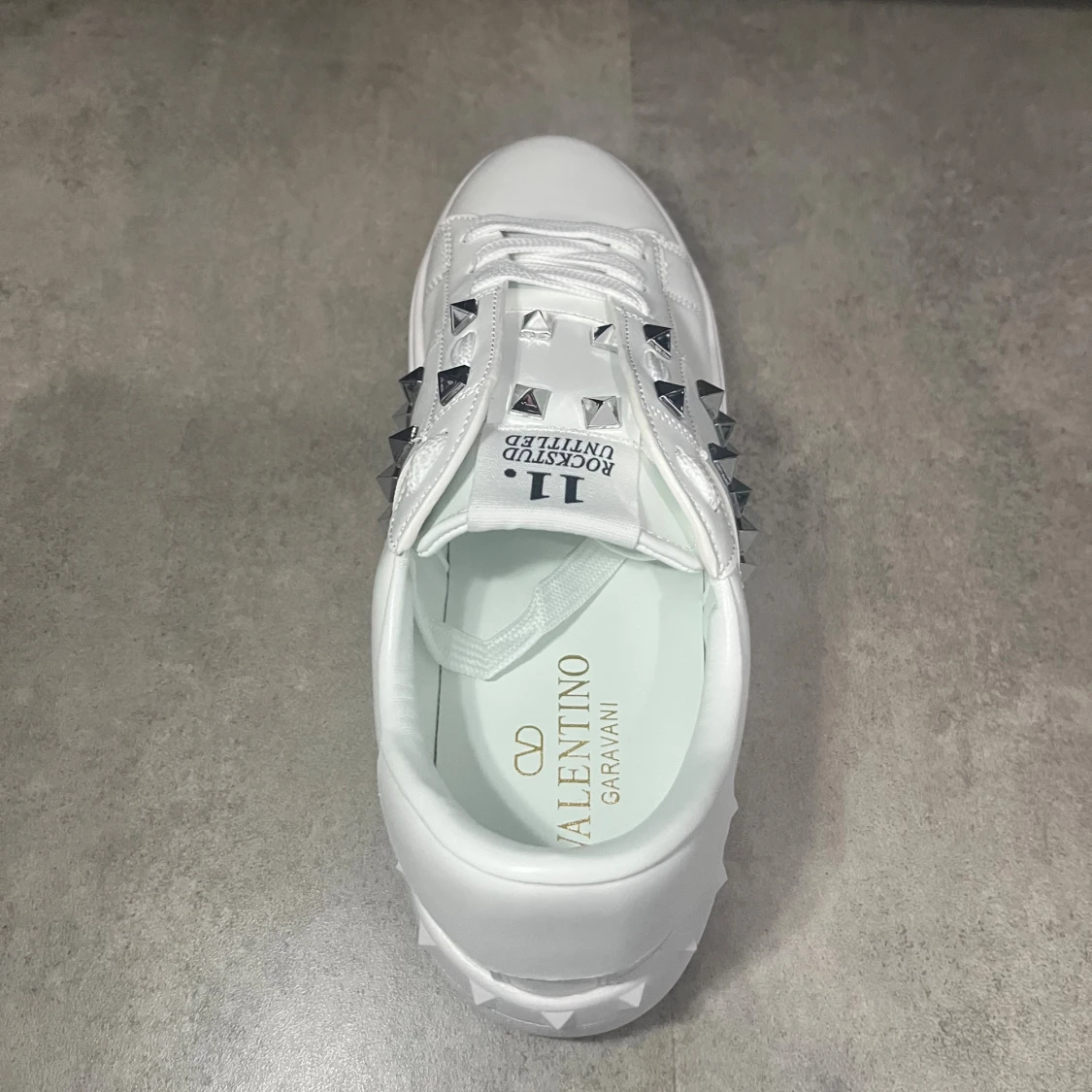 Snygga vita Valentino Rockstud Untitled sneakers med silverfärgade nitar längs sidorna och snörning framtill. Skorna har rund tå och platt sula, tillverkade i skinn. Passar dig som vill ha en lyxig stil.