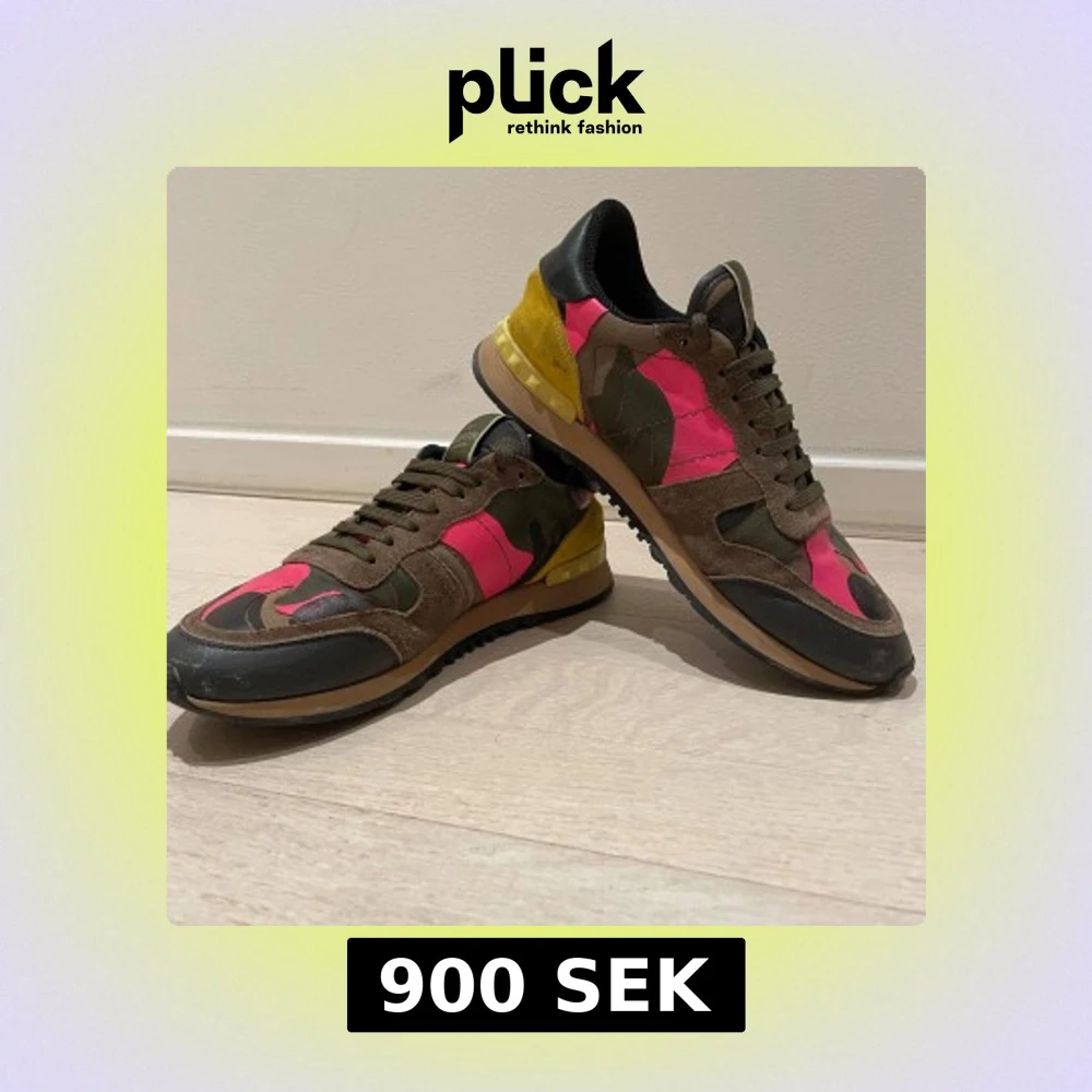 Säljer dessa snygga Valentino Rockrunner sneakers med ett unikt camouflagemönster i rosa, gult och grönt!! Skorna har en kombination av skinn och mocka. Skorna är i bra skick!!