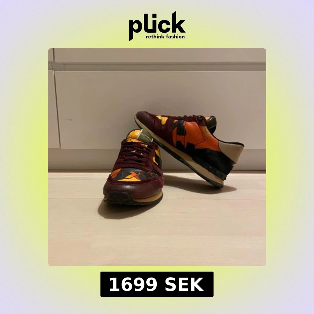 Snygga Valentino Rockrunner sneakers med ett unikt kamouflagemönster i orange, gul och svart. Skorna har en kombination av skinn och mocka med snörning och en bekväm sula. Pris kan diskuteras. Skriv i dm för fler frågor eller bilder!😊