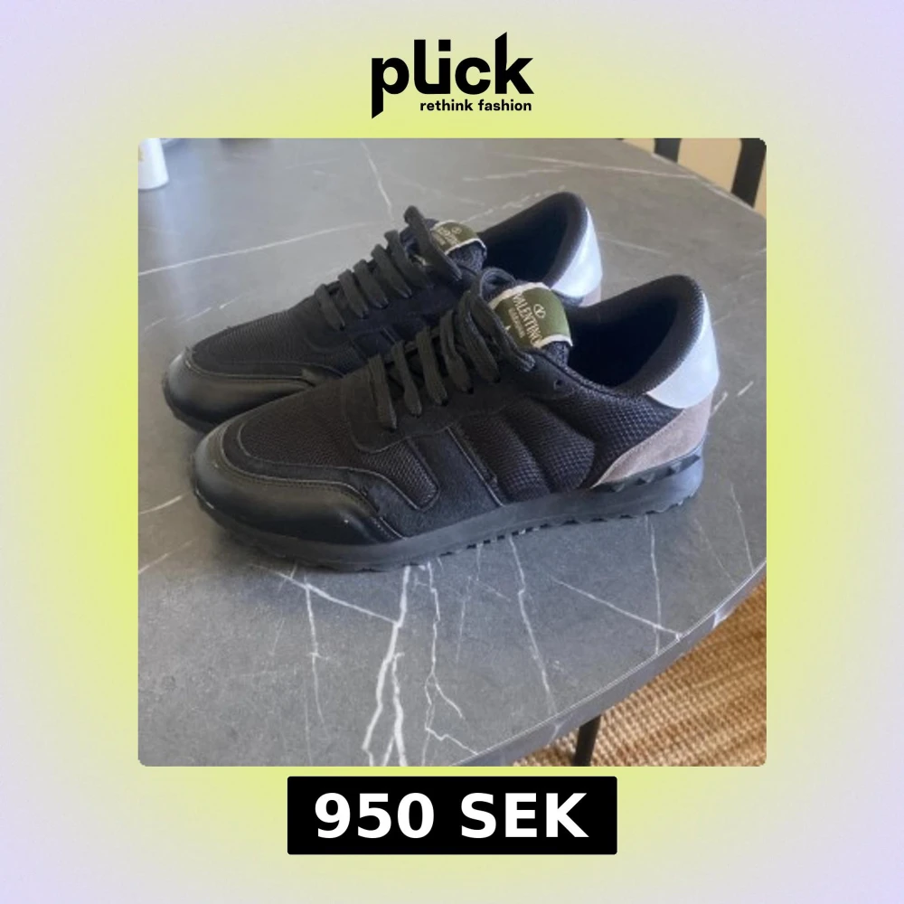 Säljer ett par svarta Valentino sneakers med vita hälpartier och grå mockadetaljer. Skorna har snörning, rund tå och platt sula. Märket syns tydligt på sulan. Perfekta för dig som gillar stilrena och exklusiva sneakers. Vet ej om de e äkta bra skick 4O men passar 41
