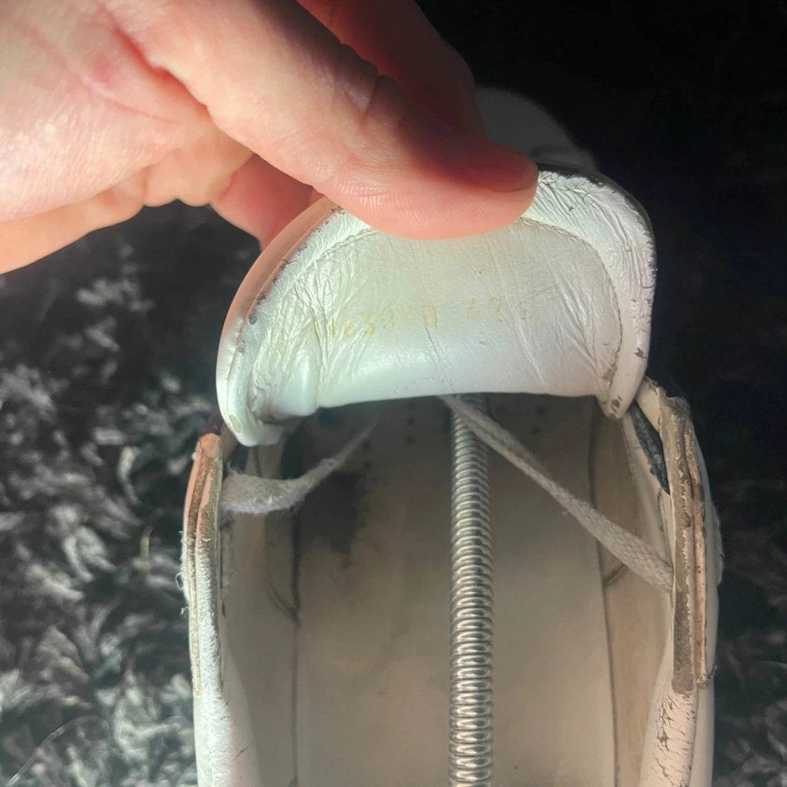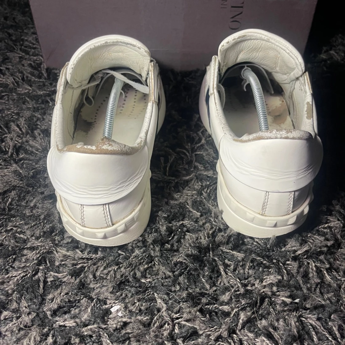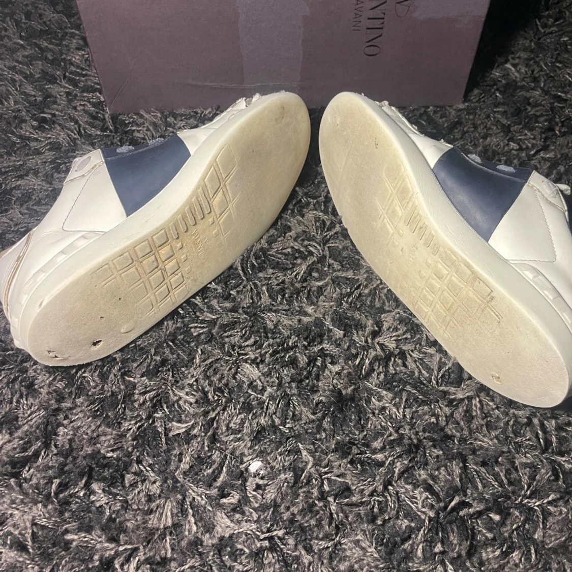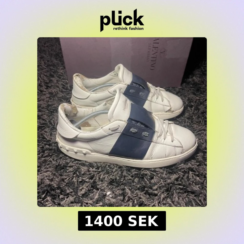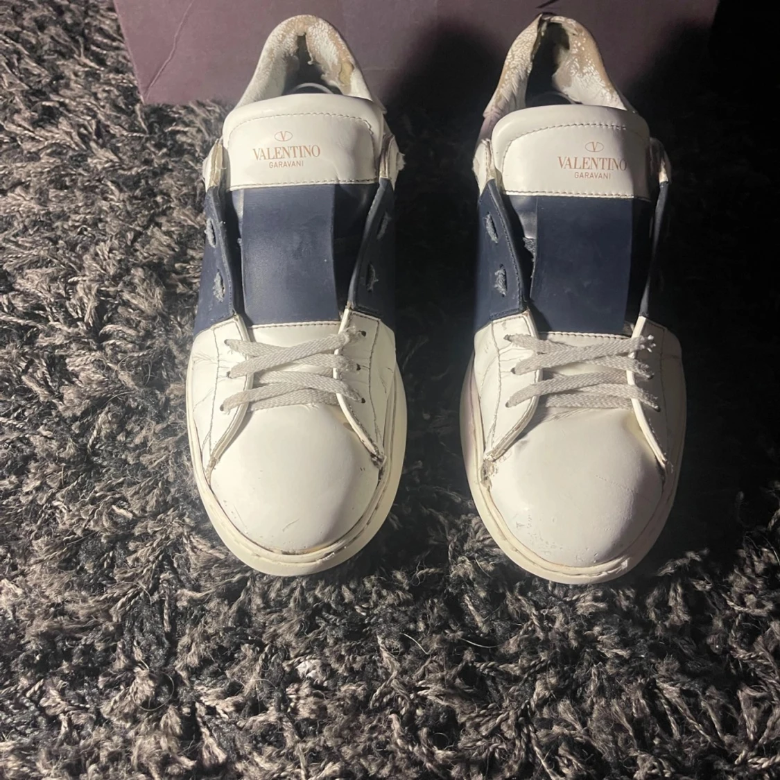 Snygga Valentino sneakers i vitt skinn med en bred blå rem över snörningen. Skorna har en stilren design med diskreta detaljer och en bekväm passform. Perfekta för att ge din outfit en lyxig touch.
