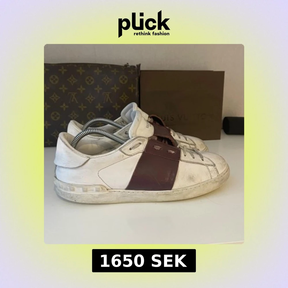 Snygga Valentino Garavani sneakers i vitt med vinröda detaljer. Skorna har snörning och en stilren design som passar perfekt för en trendig look.