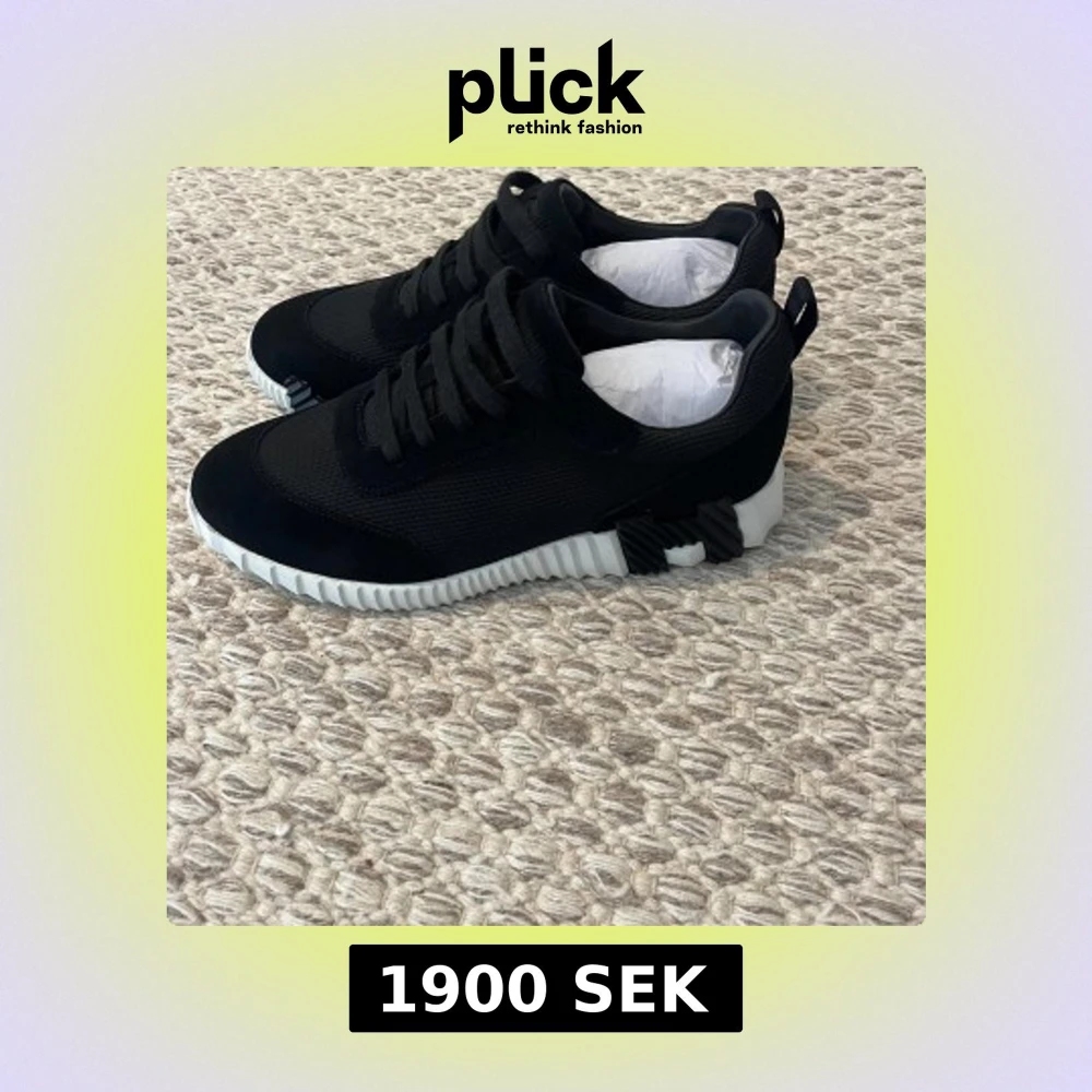 Svarta sneakers från H3rmes med vit, räfflad sula och coola svarta detaljer på yttersulan. Ovandelen är i mesh och mocka för en modern look. Skorna har snörning och en sportig, chunky vibe som sticker ut.