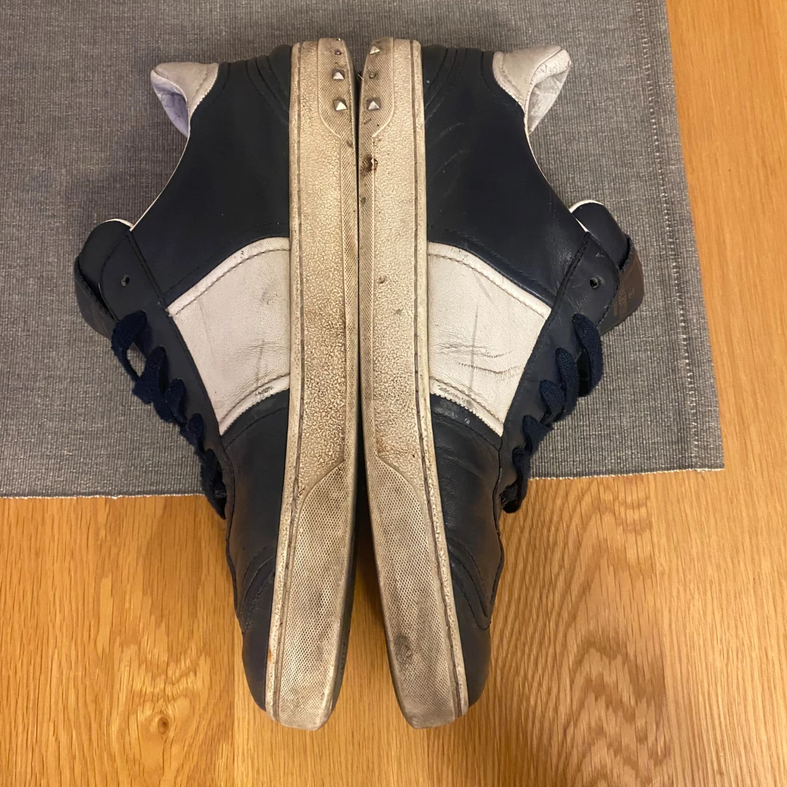 Säljer dessa blåa flycrew som är i storlek 42. Passar dock 43 lätt. De är okej skick, säljer då jag redan har ett par. Köp bara om man vet skicket, tar inga returer. Bilderna visar skicket. 13 nitar kvar tsm. Endast skor tillkommer. De är mest smutsiga bara så om man orkar tvätta dem så kan man få dem sjukt snygga